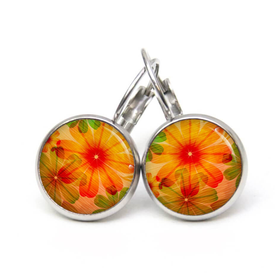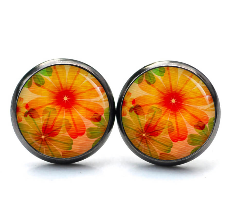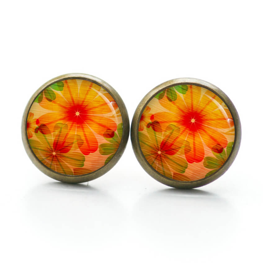 Druckknopf Ohrstecker Ohrhänger Clipse Herbst Blumen in Orange