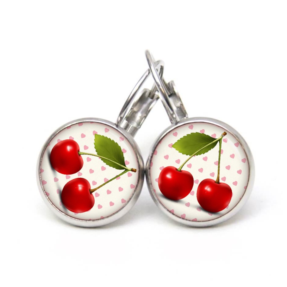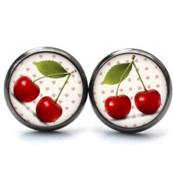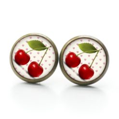 Druckknopf Ohrstecker Ohrhänger Clipse Kirsche mit Herzen
