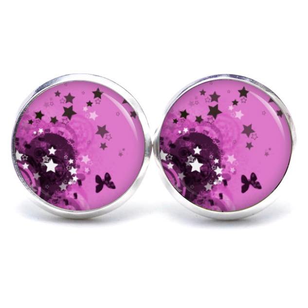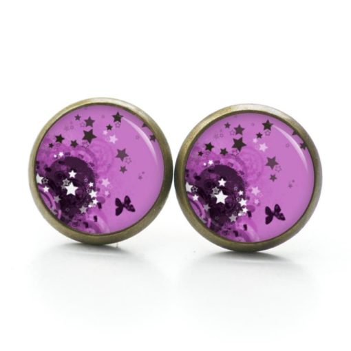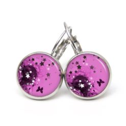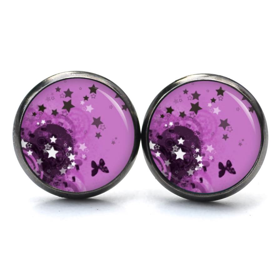 Druckknopf Ohrstecker Ohrhänger lila Sternenhimmel mit Schmetterling