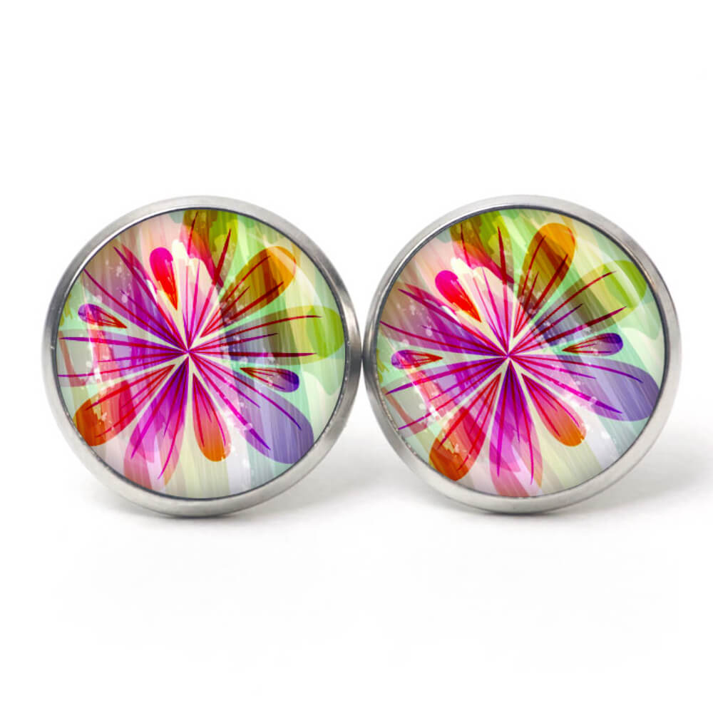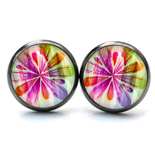 Druckknopf Ohrstecker Ohrhänger Clipse regenbogen Blume