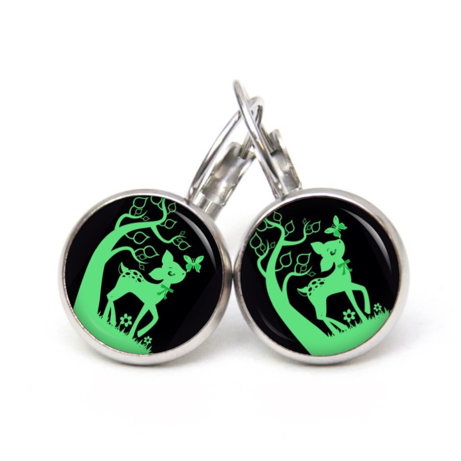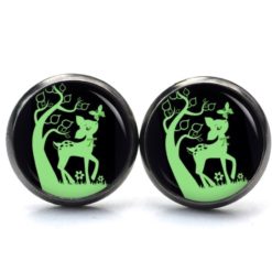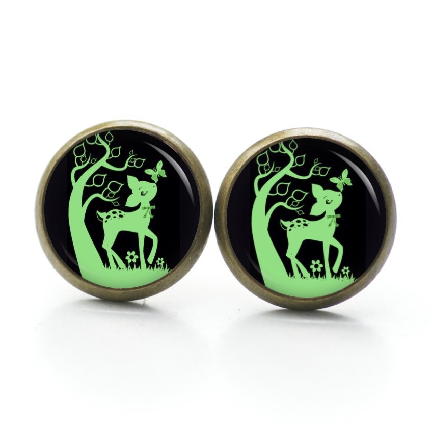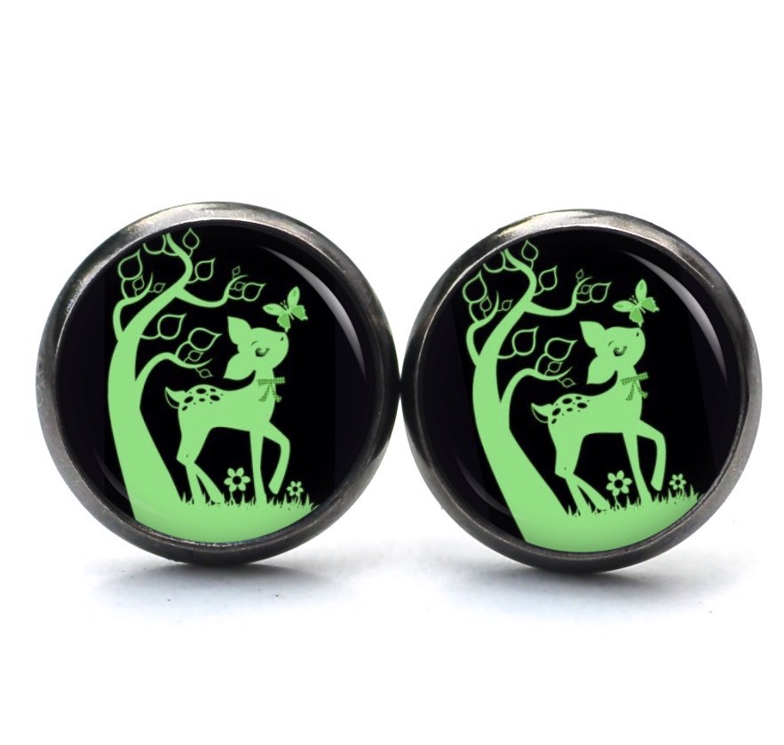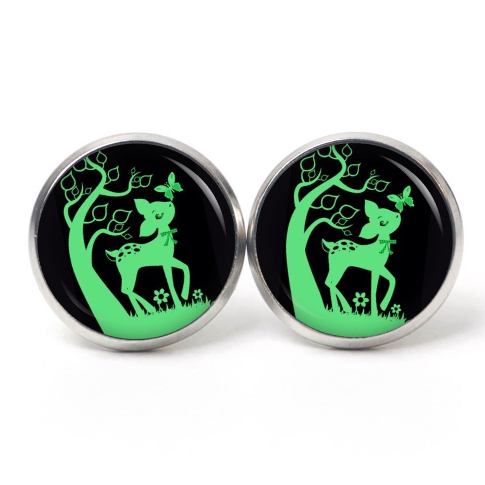 Druckknopf Ohrstecker Ohrhänger Clipse Rehkitz Reh grün schwarz