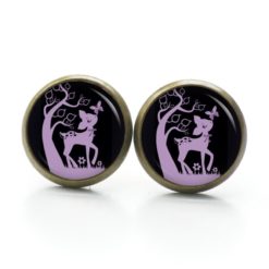Druckknopf Ohrstecker Ohrhänger Clipse Rehkitz Reh Schwarz Lila
