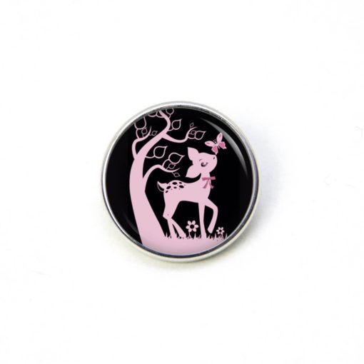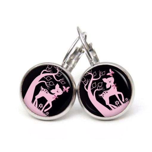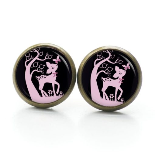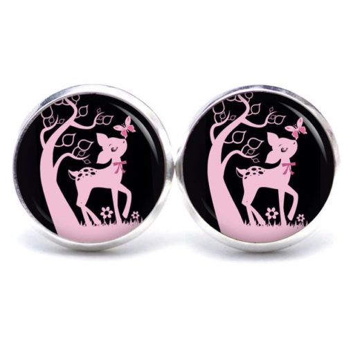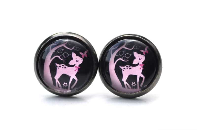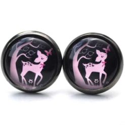 Druckknopf Ohrstecker Ohrhänger Clipse Rehkitz Reh Bambi Schwarz Pink