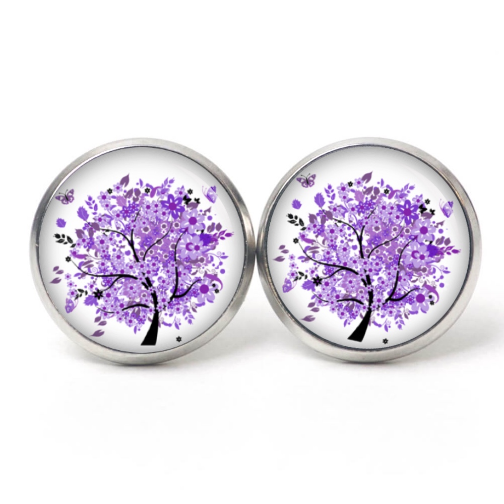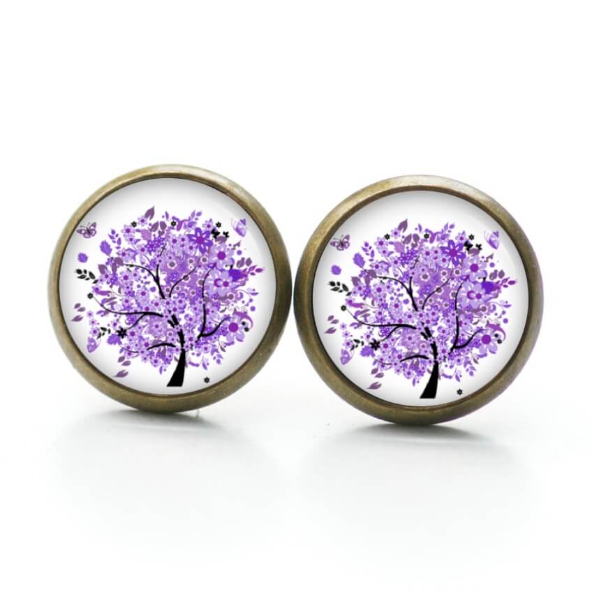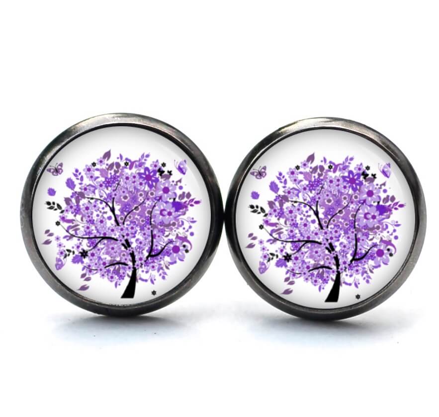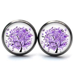 Druckknopf Ohrstecker Ohrhänger violetter Baum