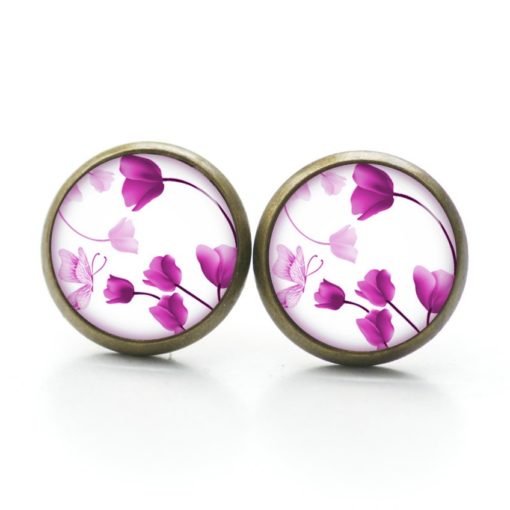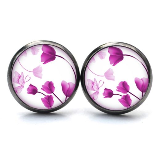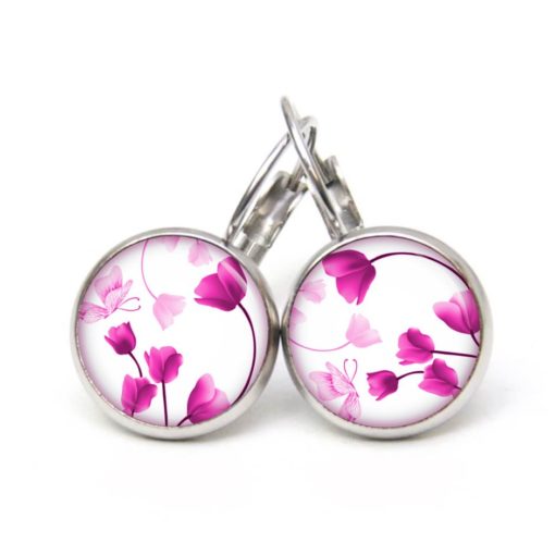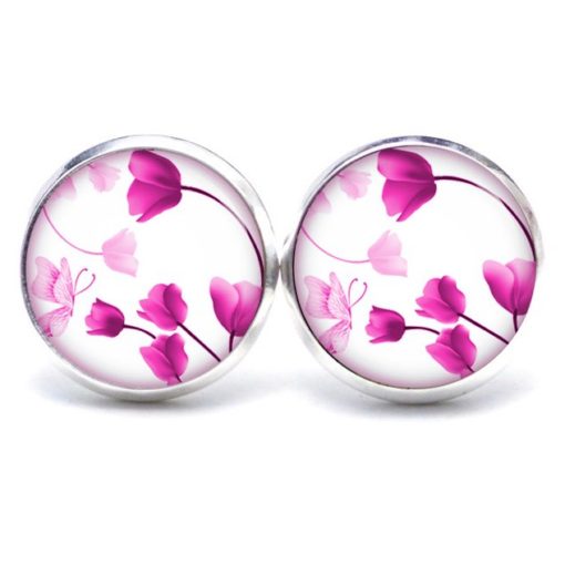 Druckknopf Ohrstecker Ohrhänger Clipse wunderschöne rosa Tulpen