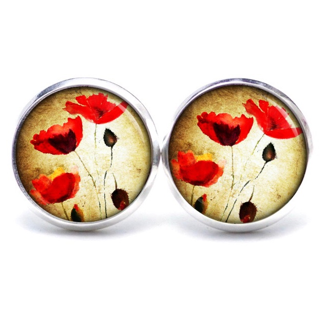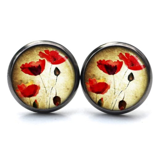 Druckknopf Ohrstecker Ohrhänger Clipse zarte große Mohnblumen