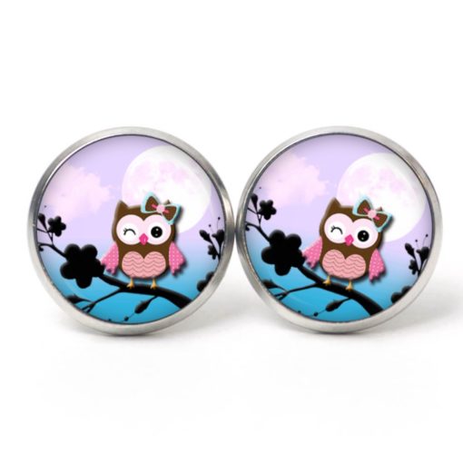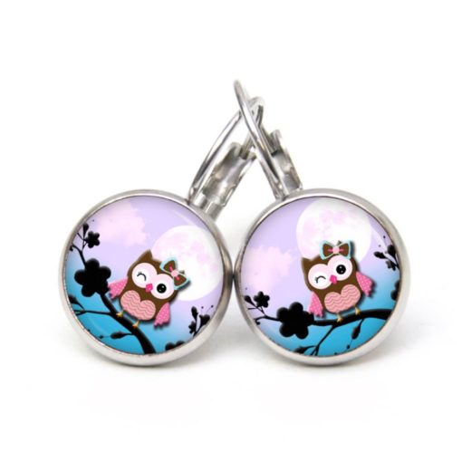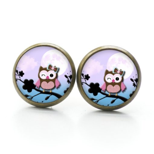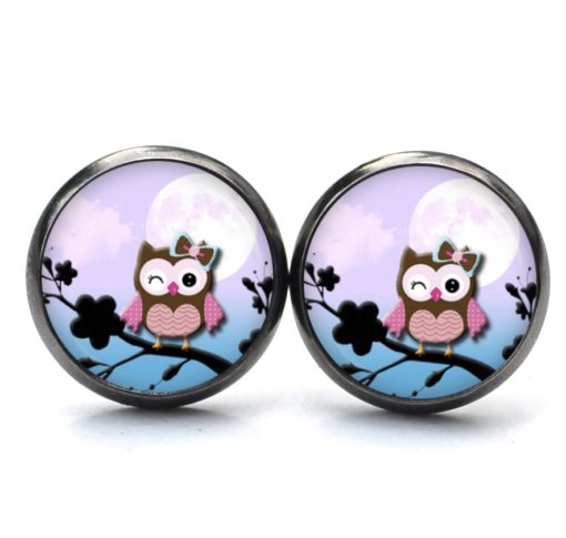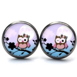 Druckknopf Ohrstecker Ohrhänger Clipse zwinkernde Eulen Dame lila blau