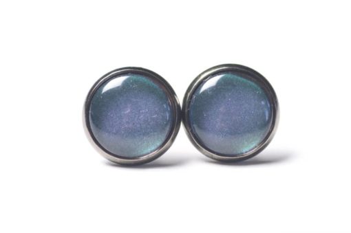 Ohrstecker, Ohrhänger, Clipse & Druckknopf – handbemalt Chamäleon blau – Schmuck aus Edelstahl
