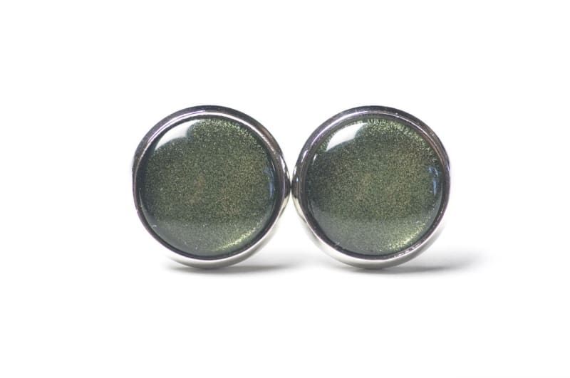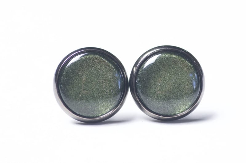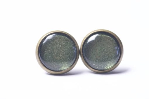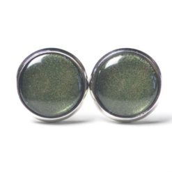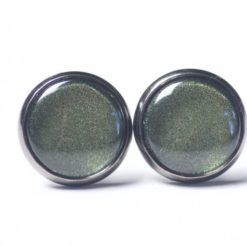 Ohrstecker, Ohrhänger, Clipse & Druckknopf – handbemalt dunkelgrün glitzernd – Schmuck aus Edelstahl