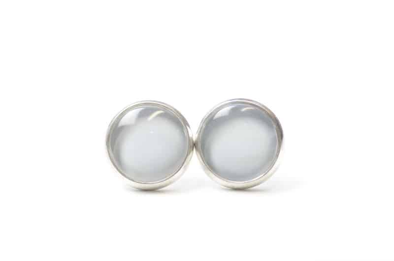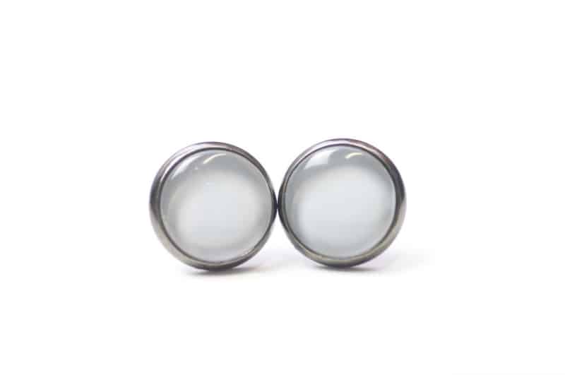 Ohrstecker, Ohrhänger, Clipse & Druckknopf – handbemalt zart grau – Schmuck aus Edelstahl