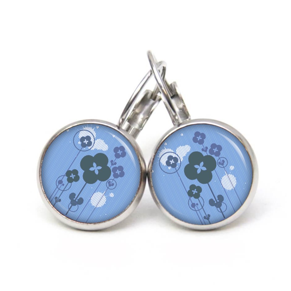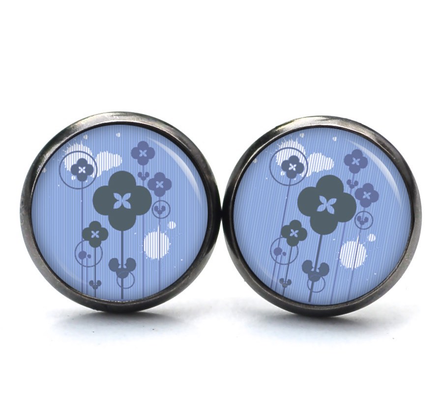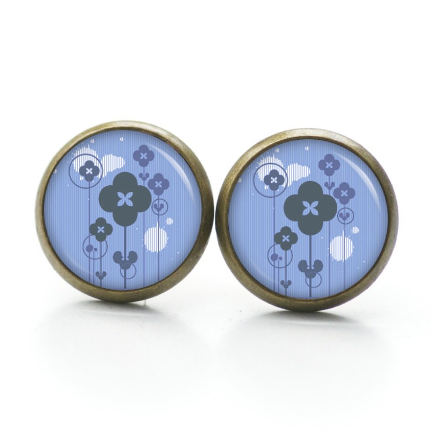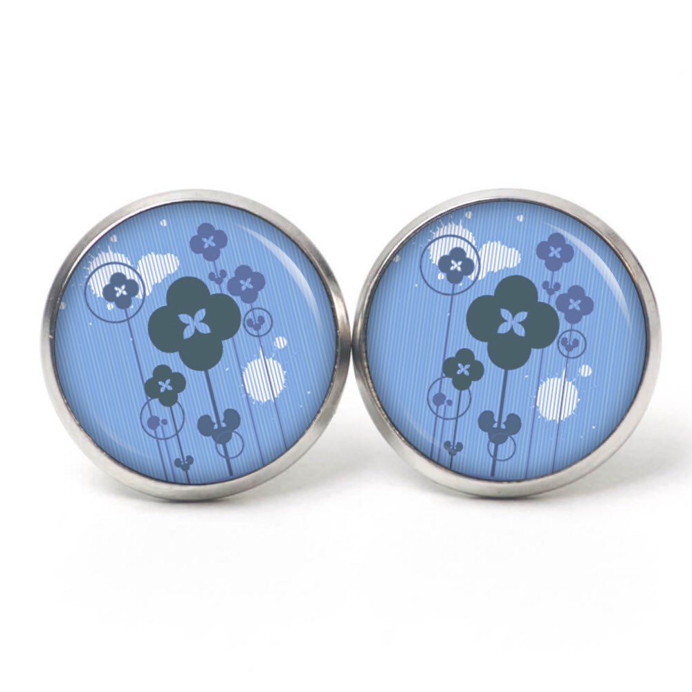 Ohrstecker, Ohrhänger, Clipse & Druckknopf – Motiv abstrakte Blumen in Blau – Schmuck aus Edelstahl