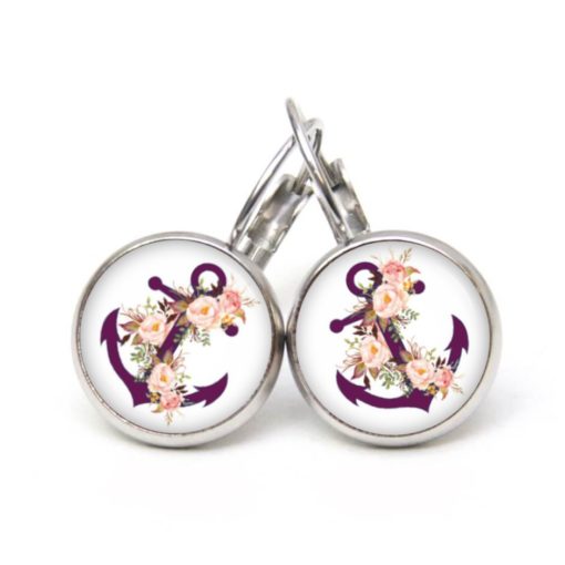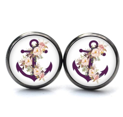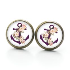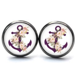 Druckknopf Ohrstecker Ohrhänger Clipse Anker violett mit Rosen