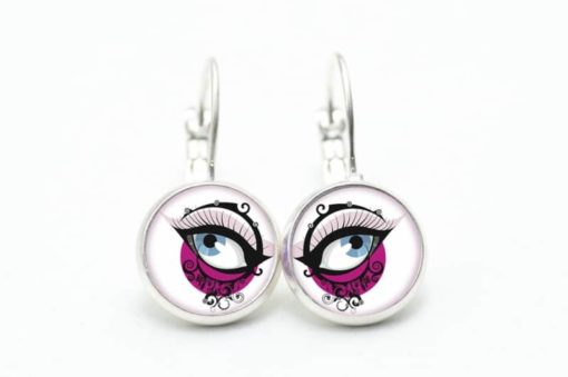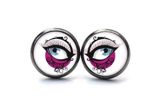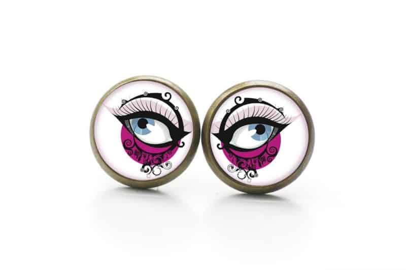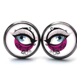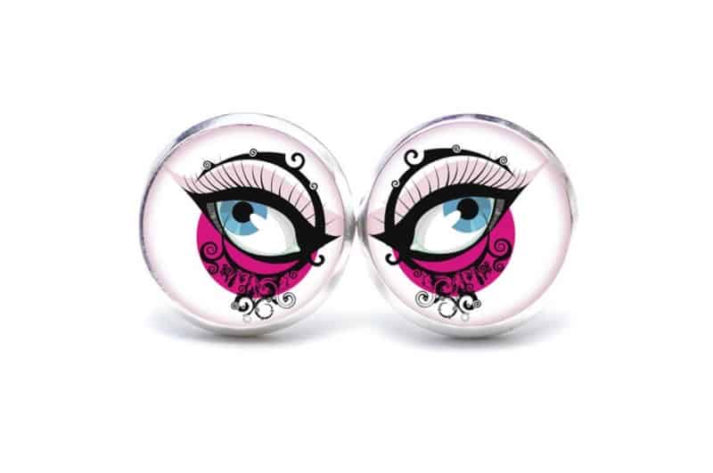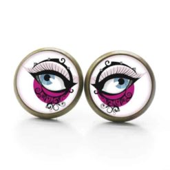 Druckknopf Ohrstecker Ohrhänger blaue Augen in Pink