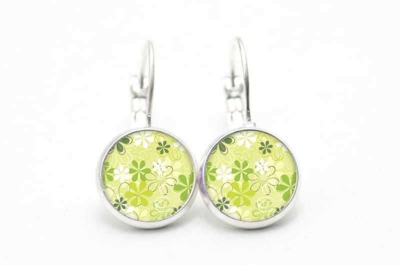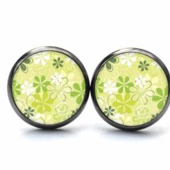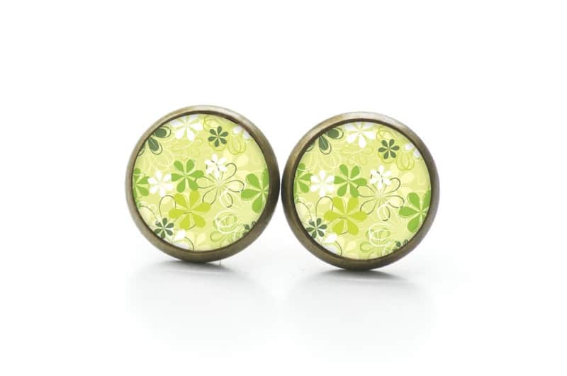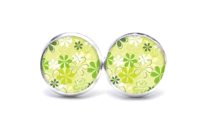 Druckknopf / Ohrstecker / Ohrhänger Blumen grün