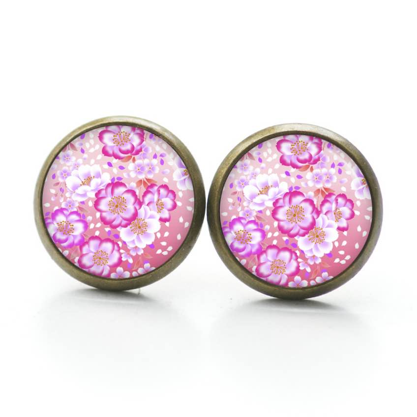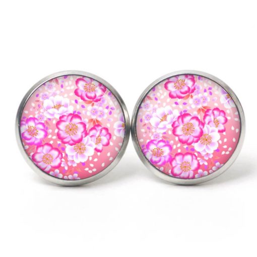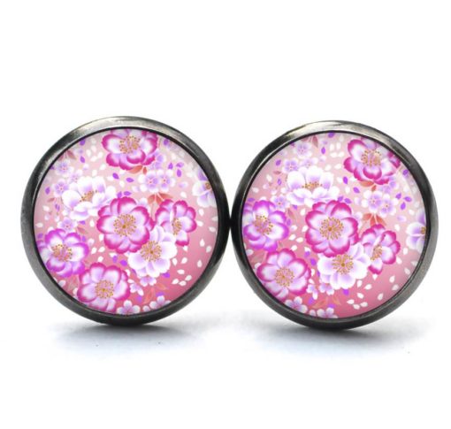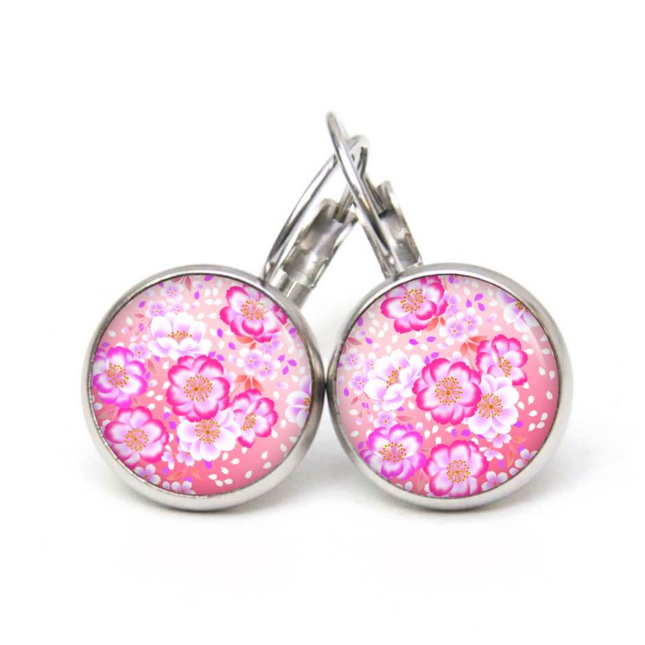 Druckknopf Ohrstecker Ohrhänger Clipse Blumen Meer in pink und rosa