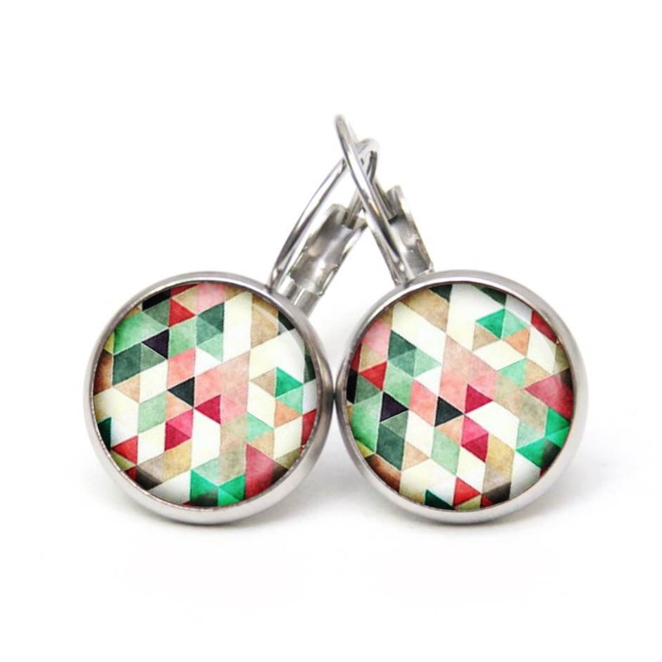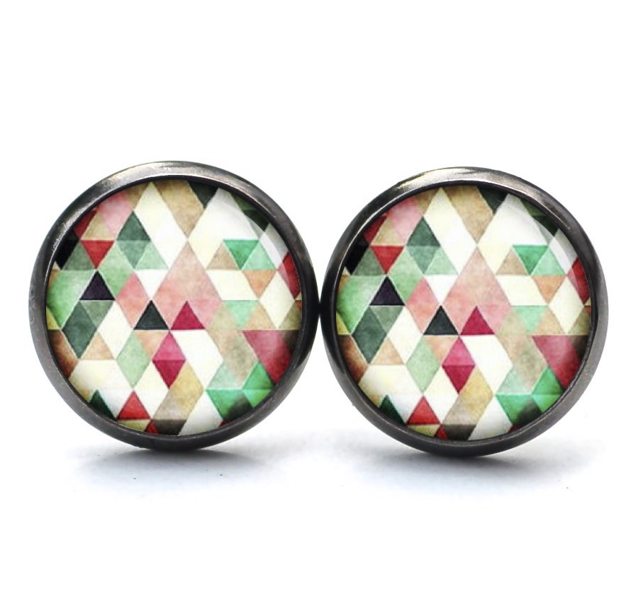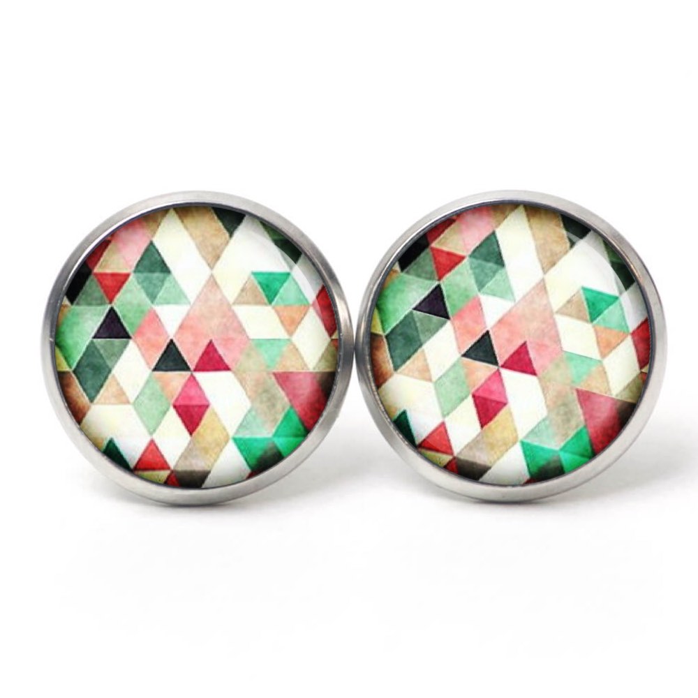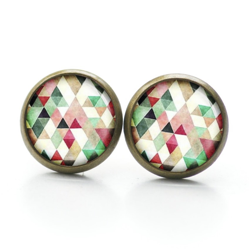 Druckknopf Ohrstecker Ohrhänger Clipse bunt farbenfroh Mosaik Mandala Rauten Kaleidoskop