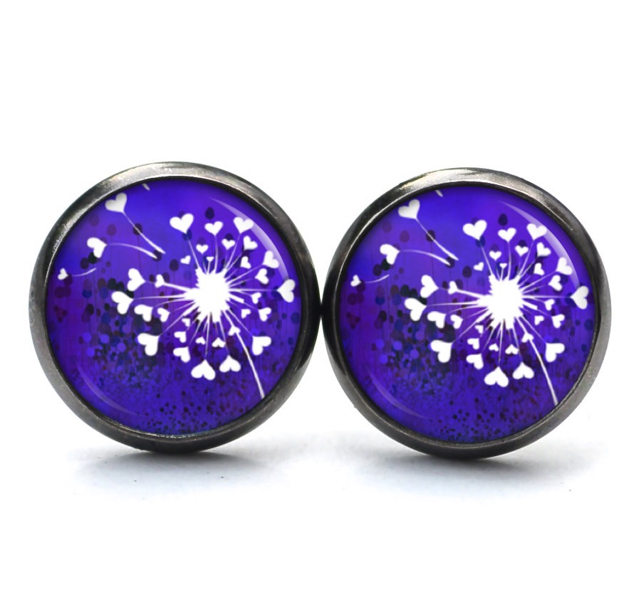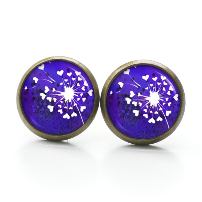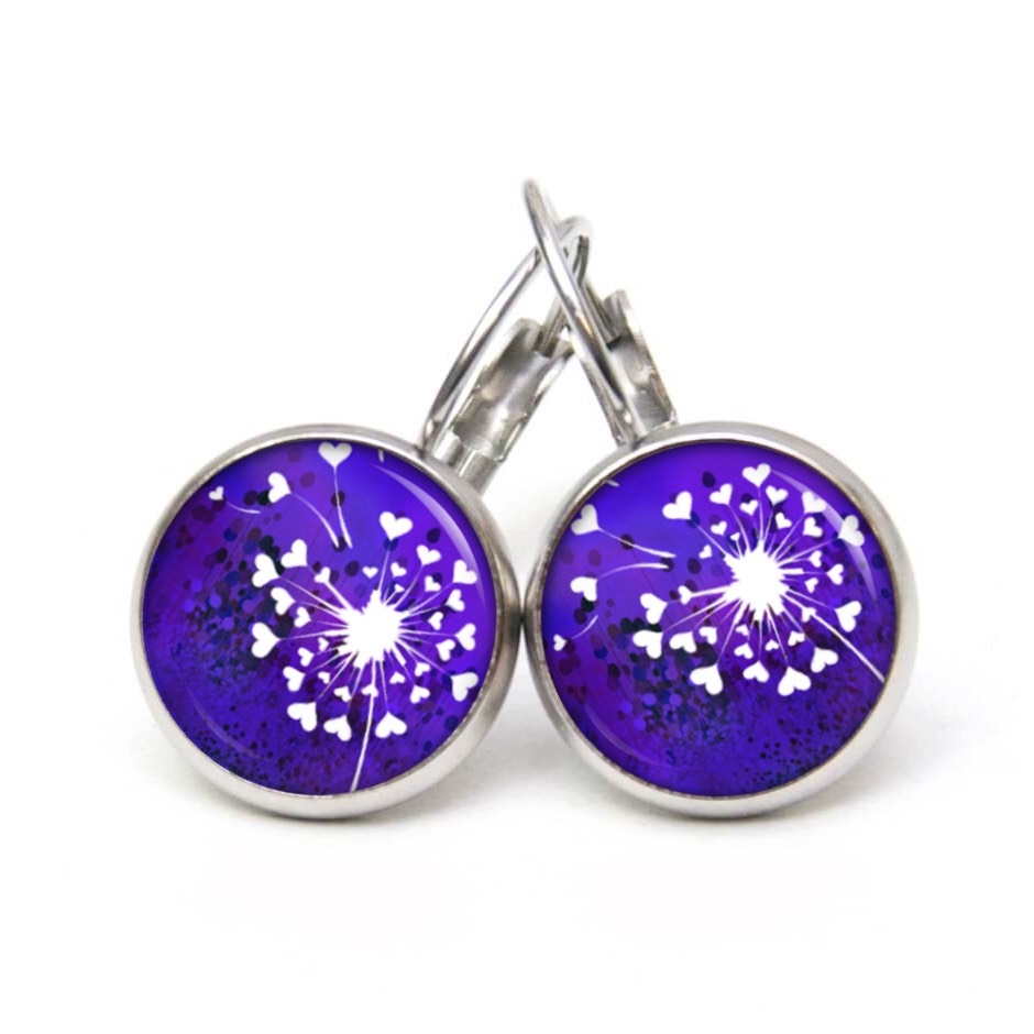 Druckknopf Ohrstecker Ohrhänger Clipse violett weiße Pusteblume