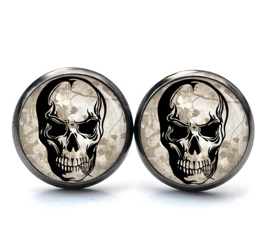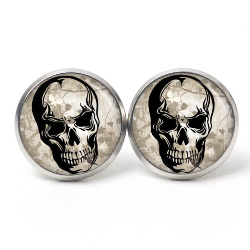 Ohrstecker, Ohrhänger, Clipse & Druckknopf – Motiv schwarzer Totenkopf – Schmuck aus Edelstahl