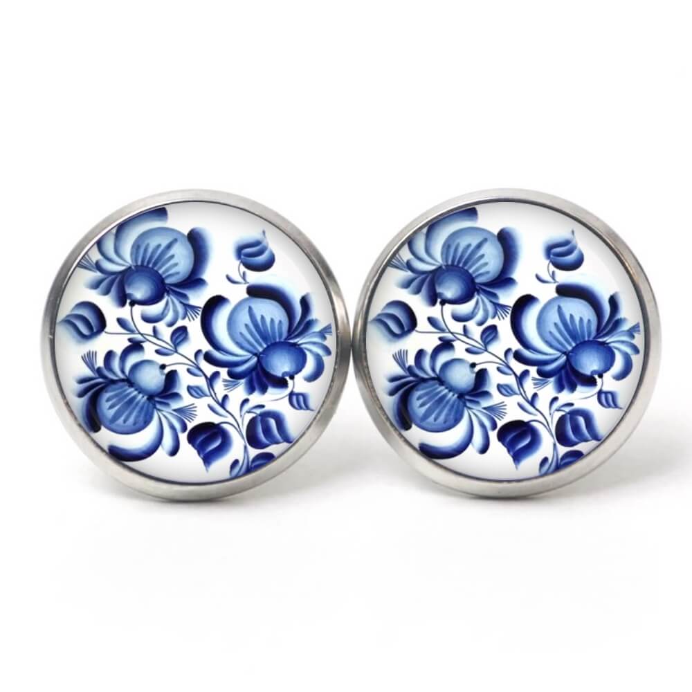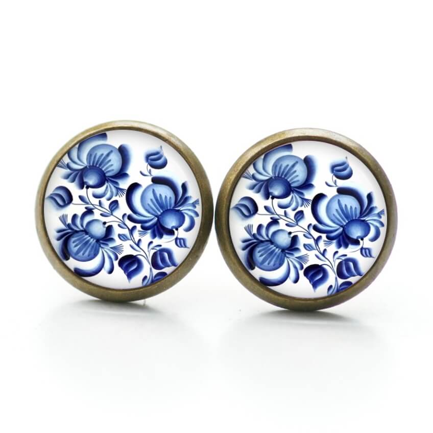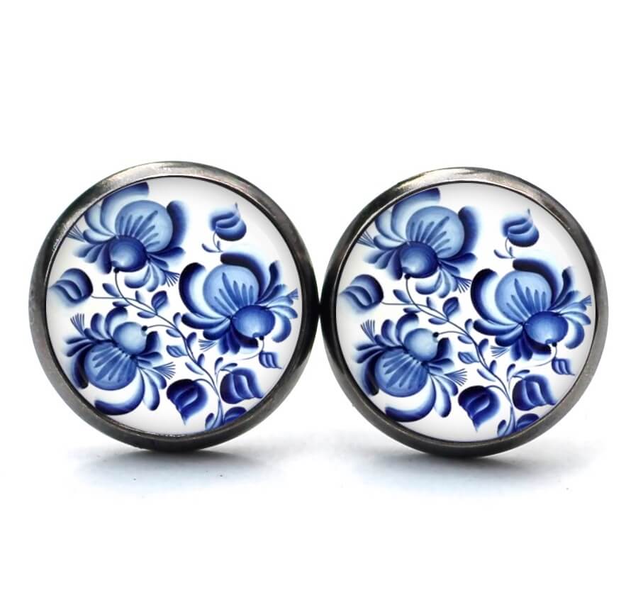 Ohrringe dunkelblaue Blumen im Gzhel Stil