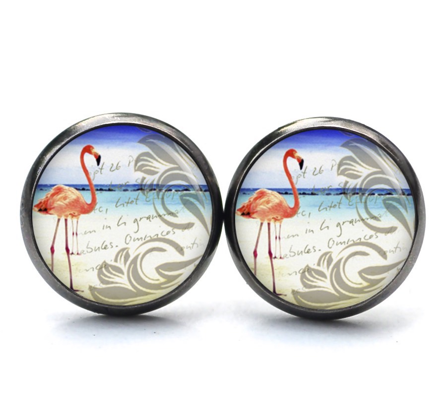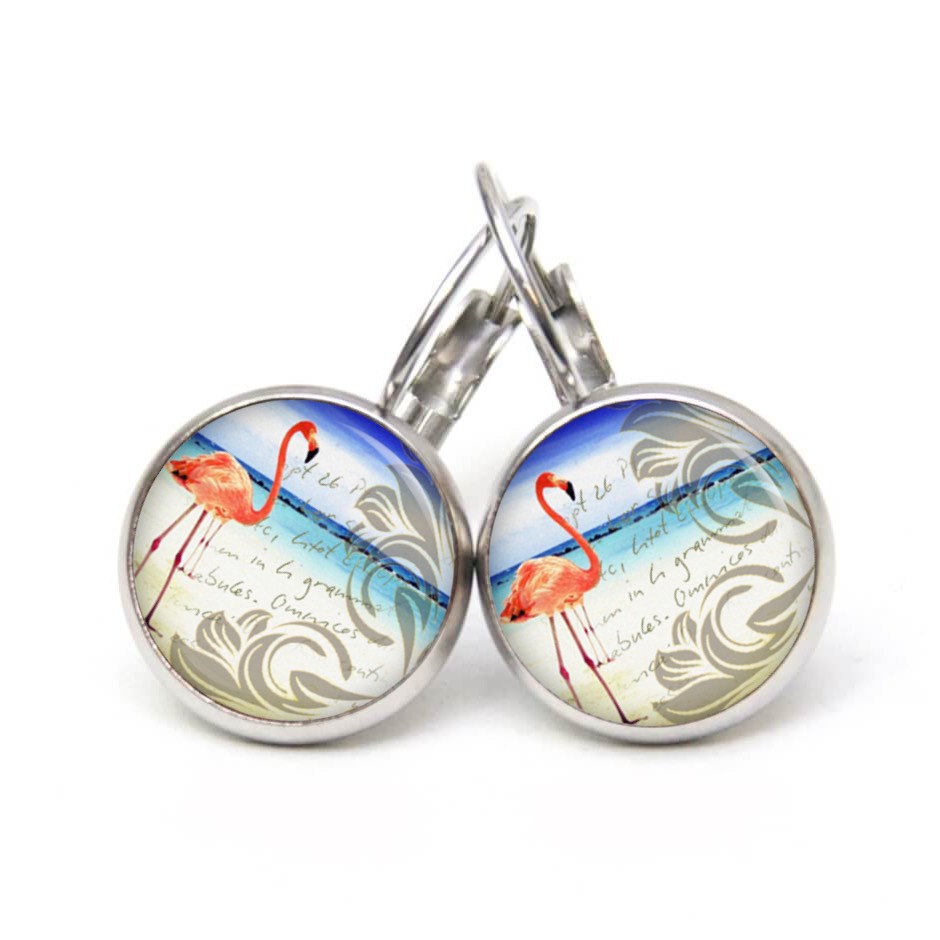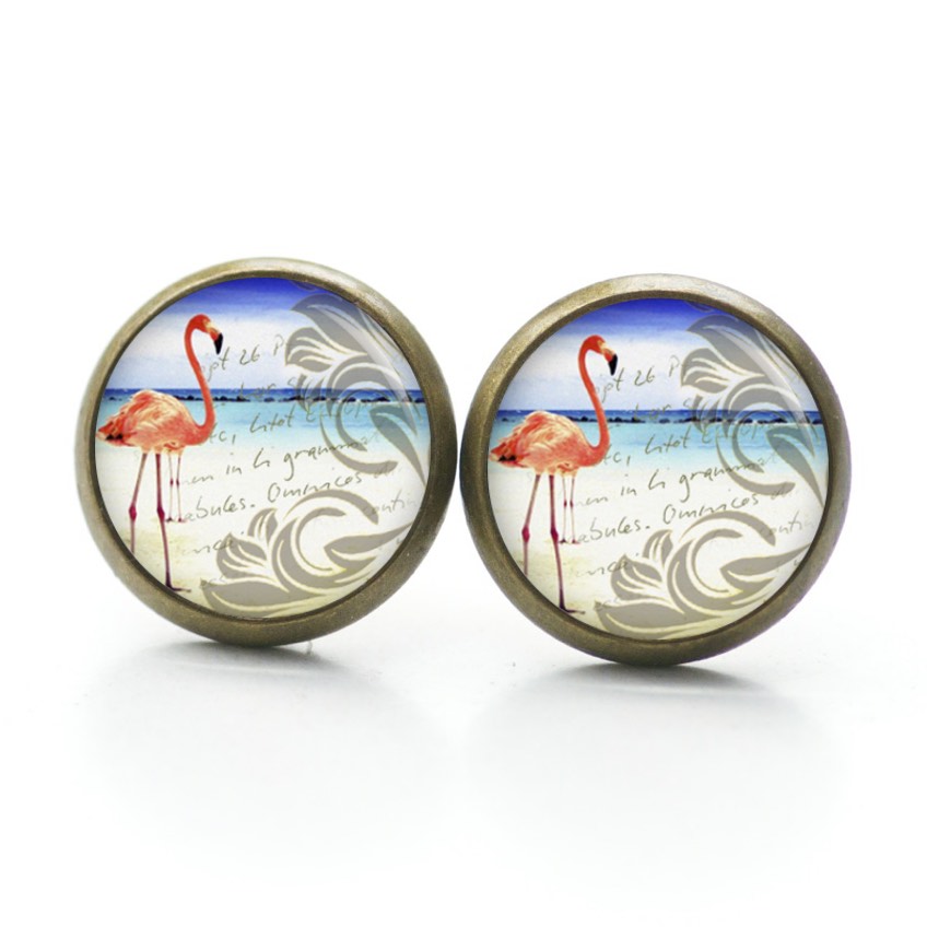 Druckknopf Ohrstecker Ohrhänger Clipse Flamingo am Strand