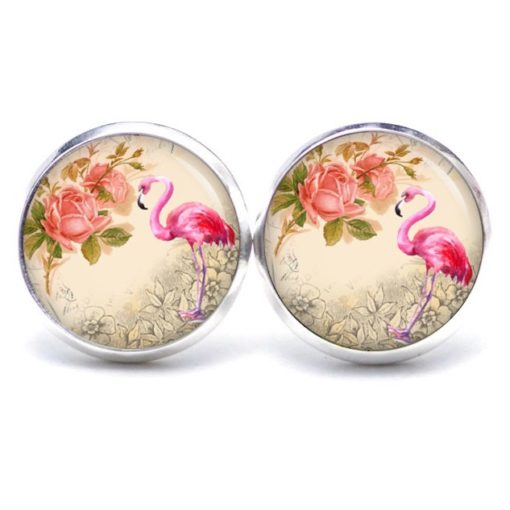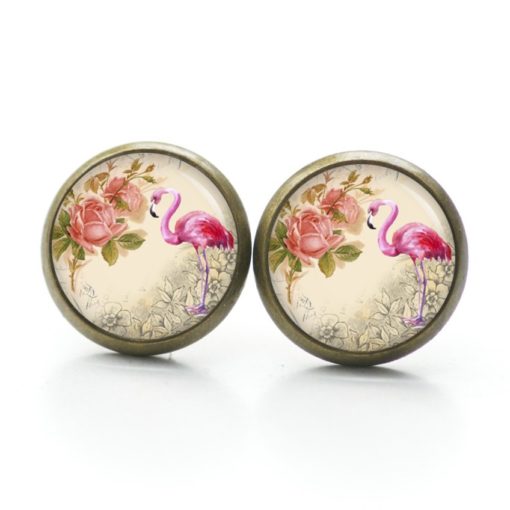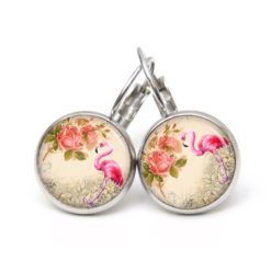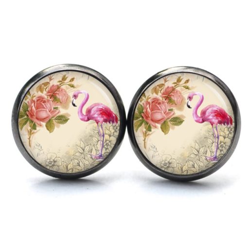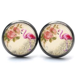 Druckknopf Ohrstecker Ohrhänger Clipse Flamingo mit Blumen