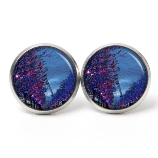 Druckknopf Ohrstecker Ohrhänger Clipse Frühlingsboten bei Nacht blau rosa