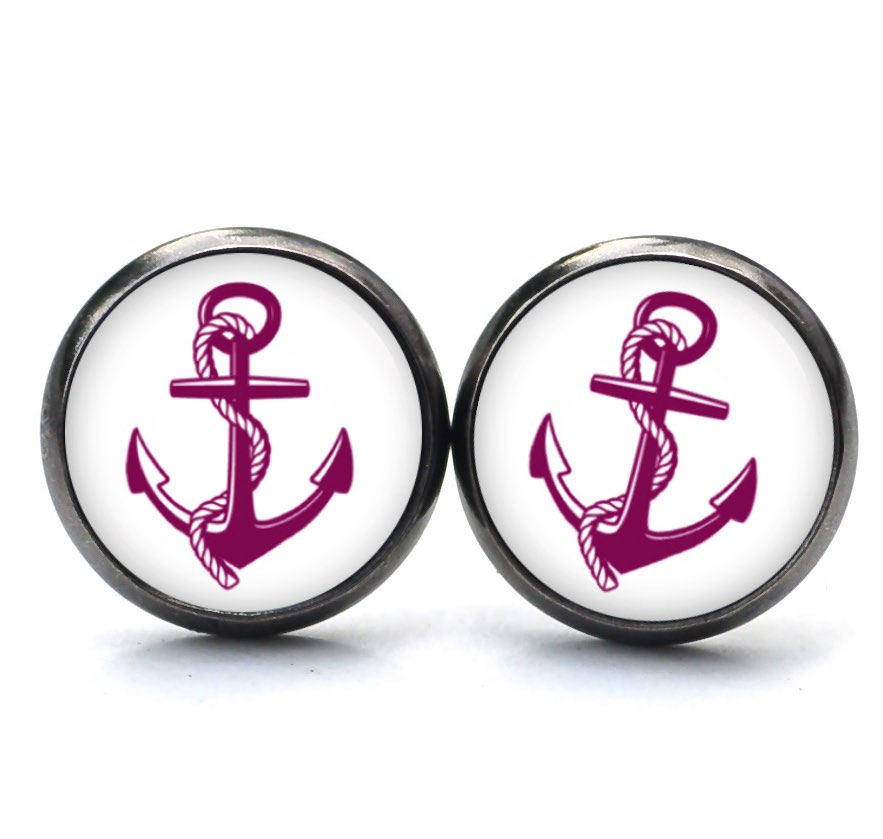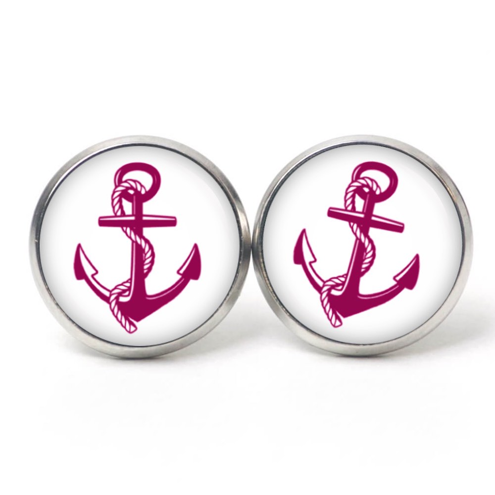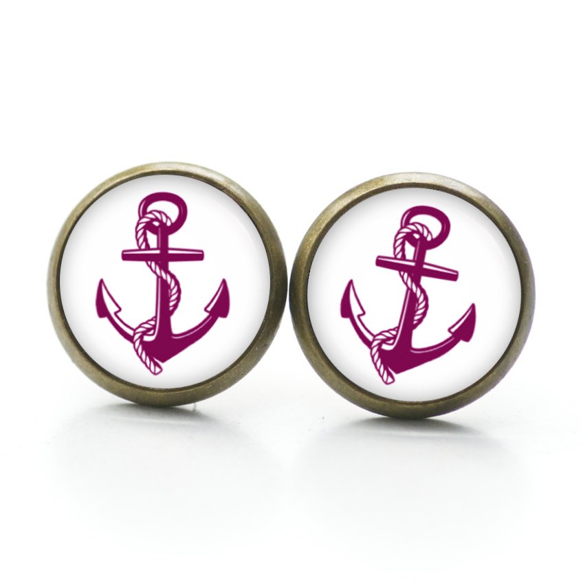Druckknopf Ohrstecker Ohrhänger Clipse fuchsia Anker