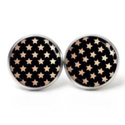 Druckknopf Ohrstecker Ohrhänger Clipse goldene Sterne auf schwarzem Himmel