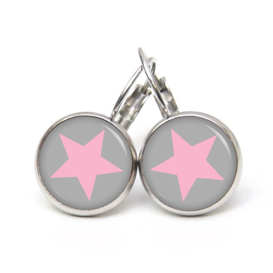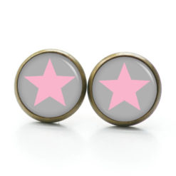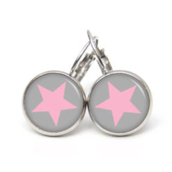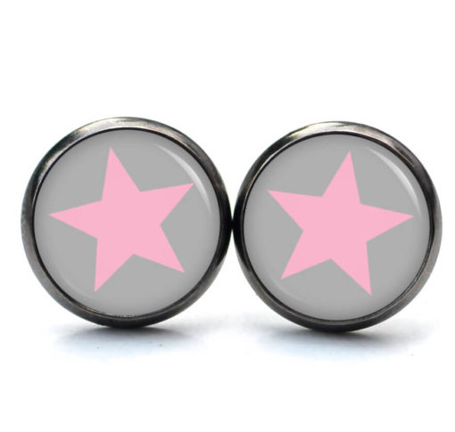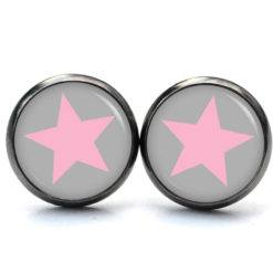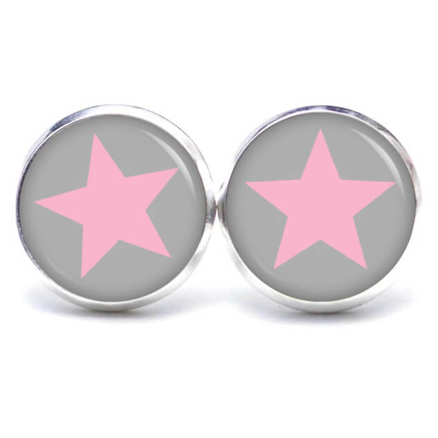 Druckknopf Ohrstecker Ohrhänger Clipse grau rosa Stern