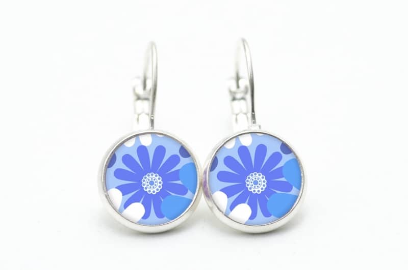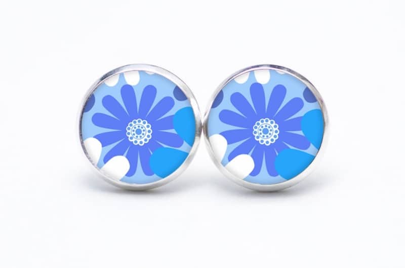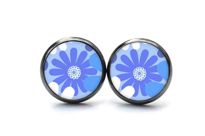 Druckknopf / Ohrstecker / Ohrhänger große blaue Blume