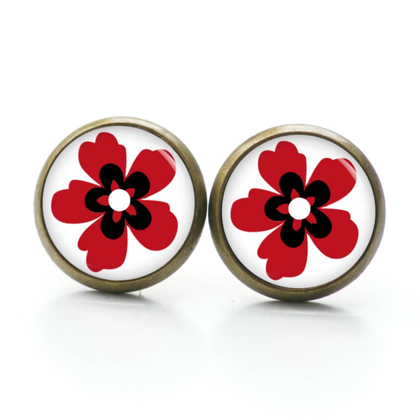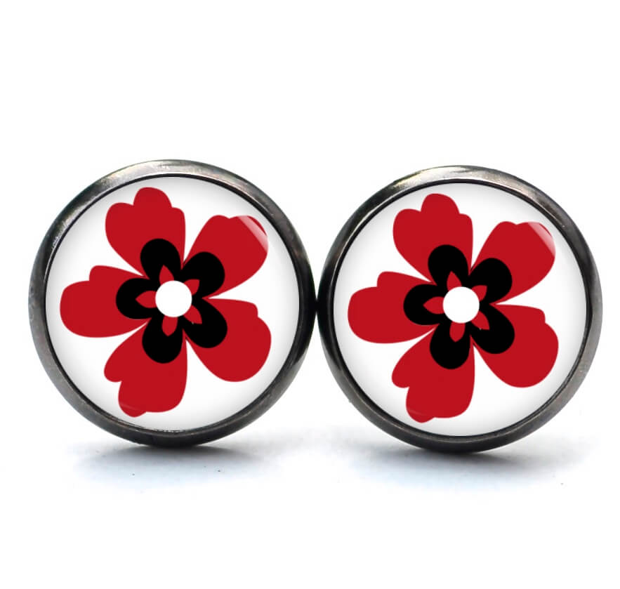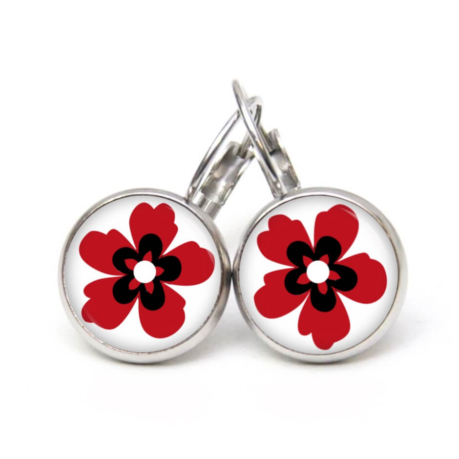 Ohrstecker, Ohrhänger, Clipse & Druckknopf – Motiv große rote Blume – Schmuck aus Edelstahl