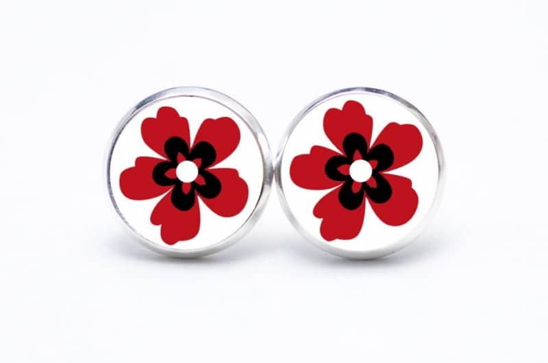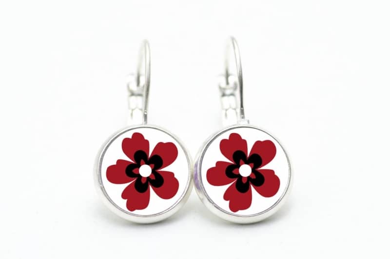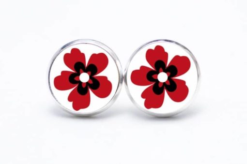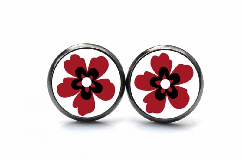 Druckknopf / Ohrstecker / Ohrhänger große rote Blume