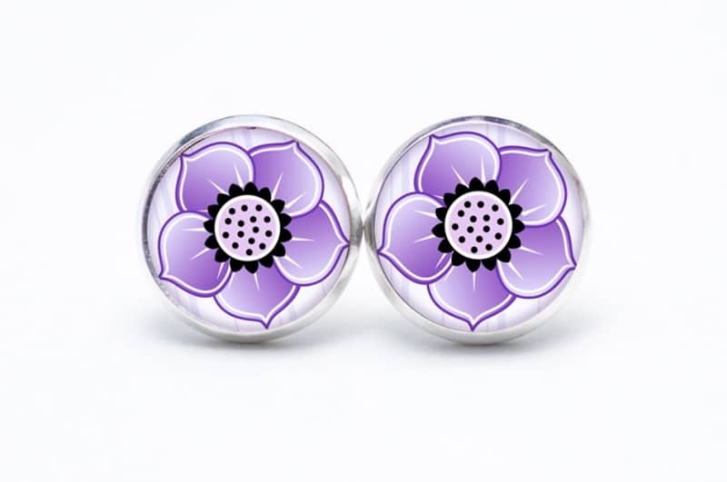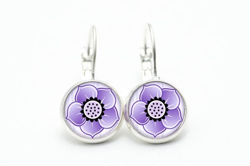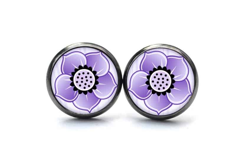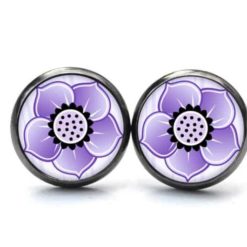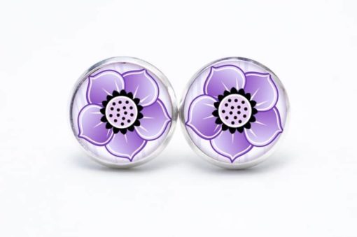 Druckknopf / Ohrstecker / Ohrhänger große violette Blume