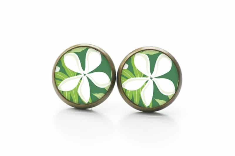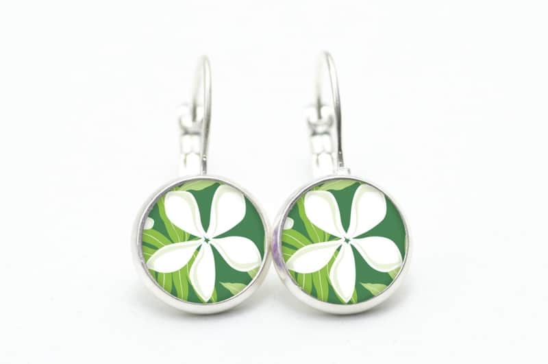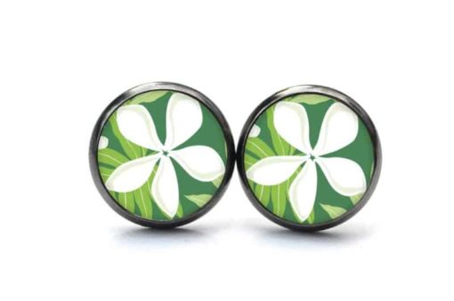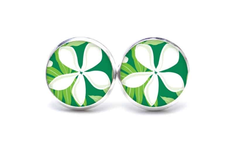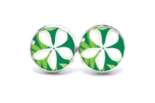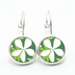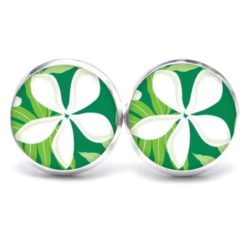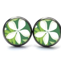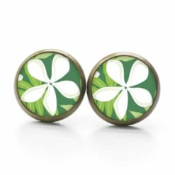 Druckknopf / Ohrstecker / Ohrhänger große weiße Blume auf grün