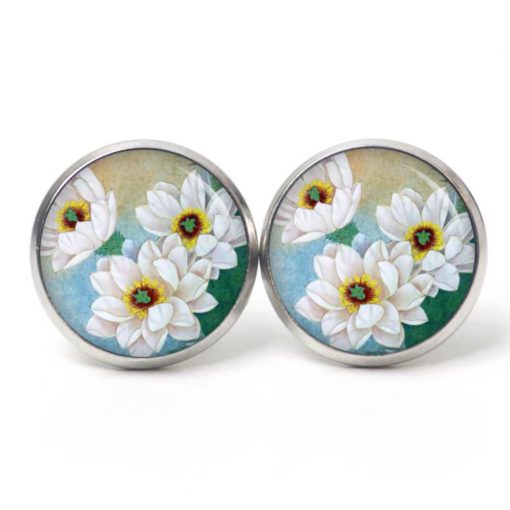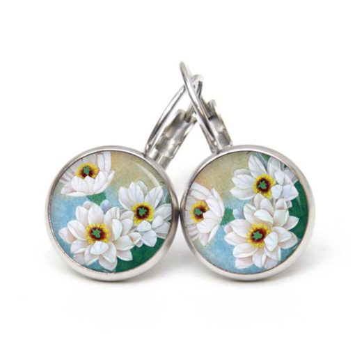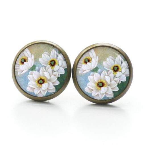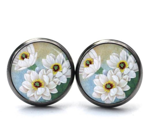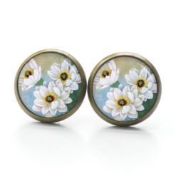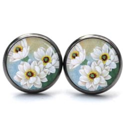 Druckknopf Ohrstecker Ohrhänger Clipse große weiße Blumen