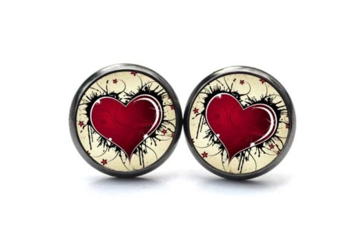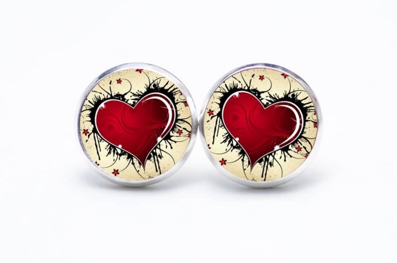 Druckknopf Ohrstecker Ohrhänger großes rotes Herz