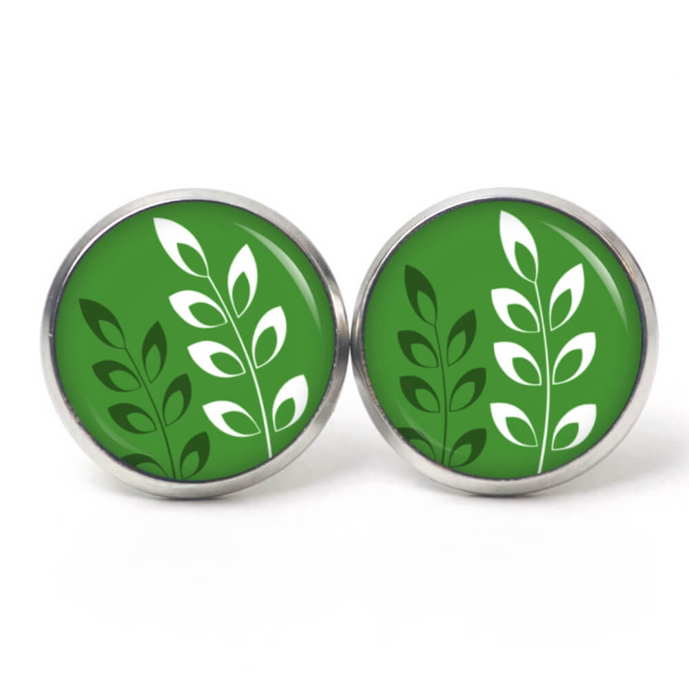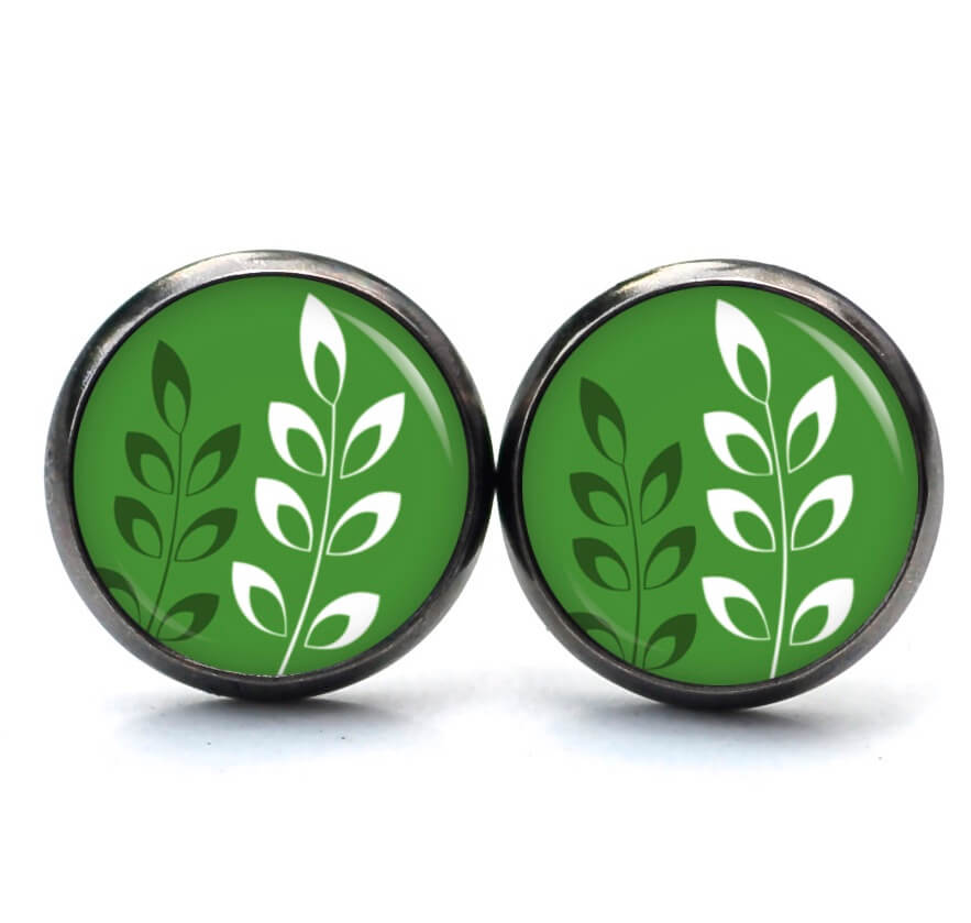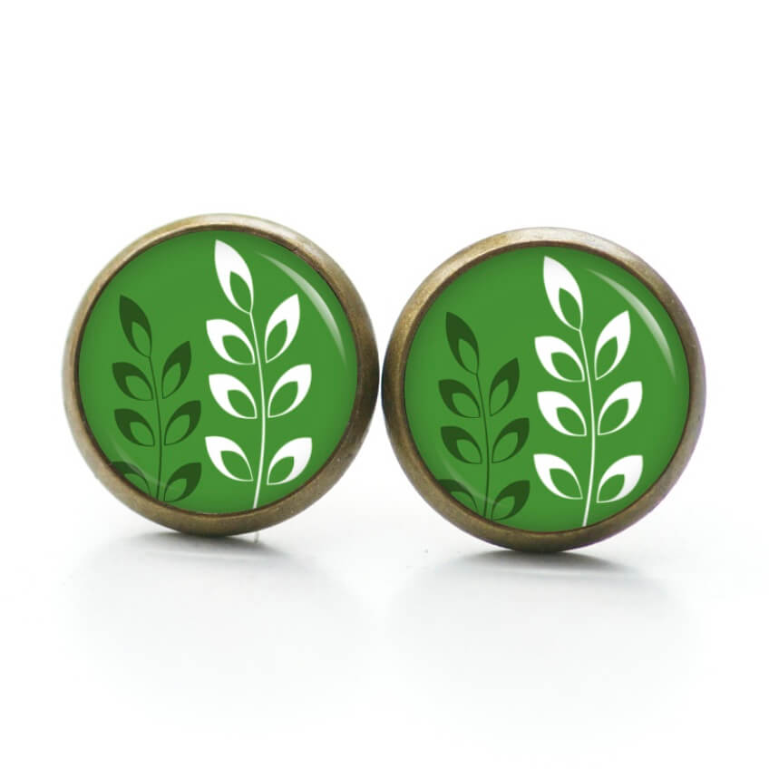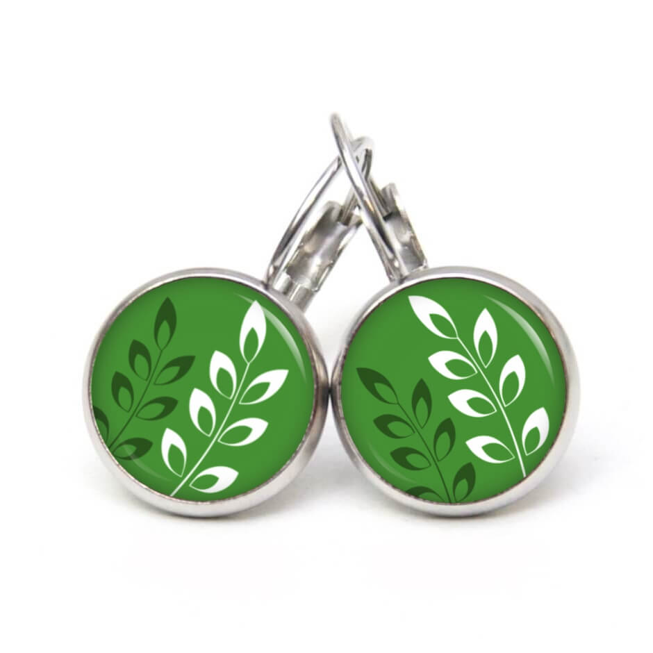Ohrring grün mit weißen Blättern