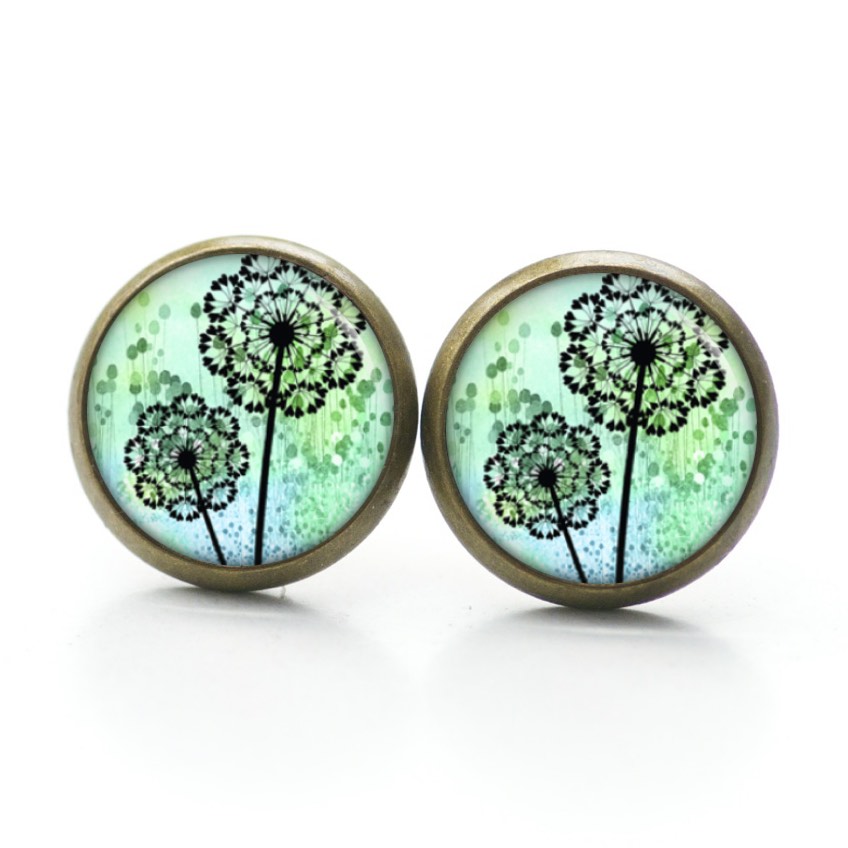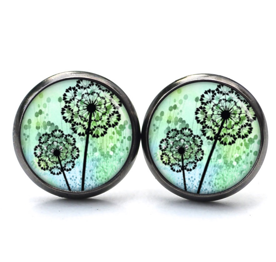 Druckknopf Ohrstecker Ohrhänger Clipse grüne Pusteblume