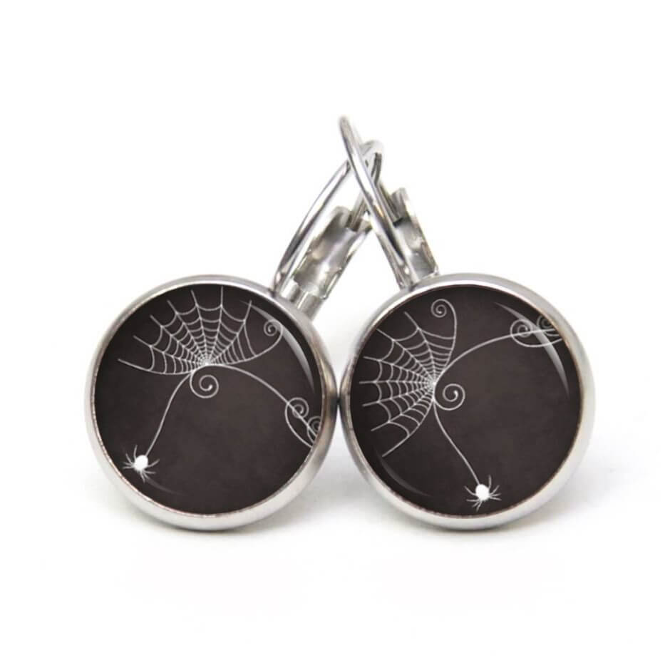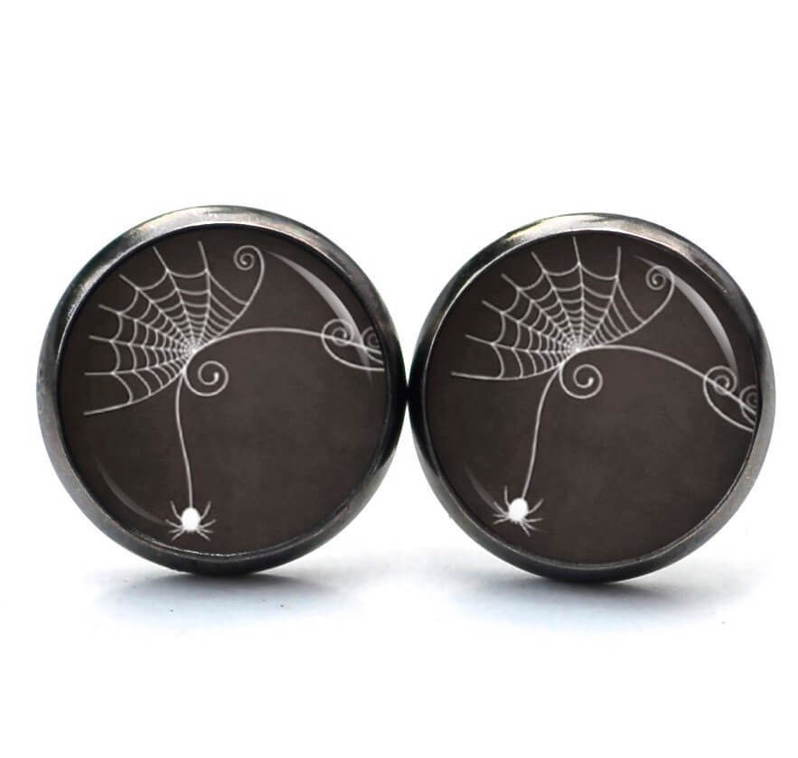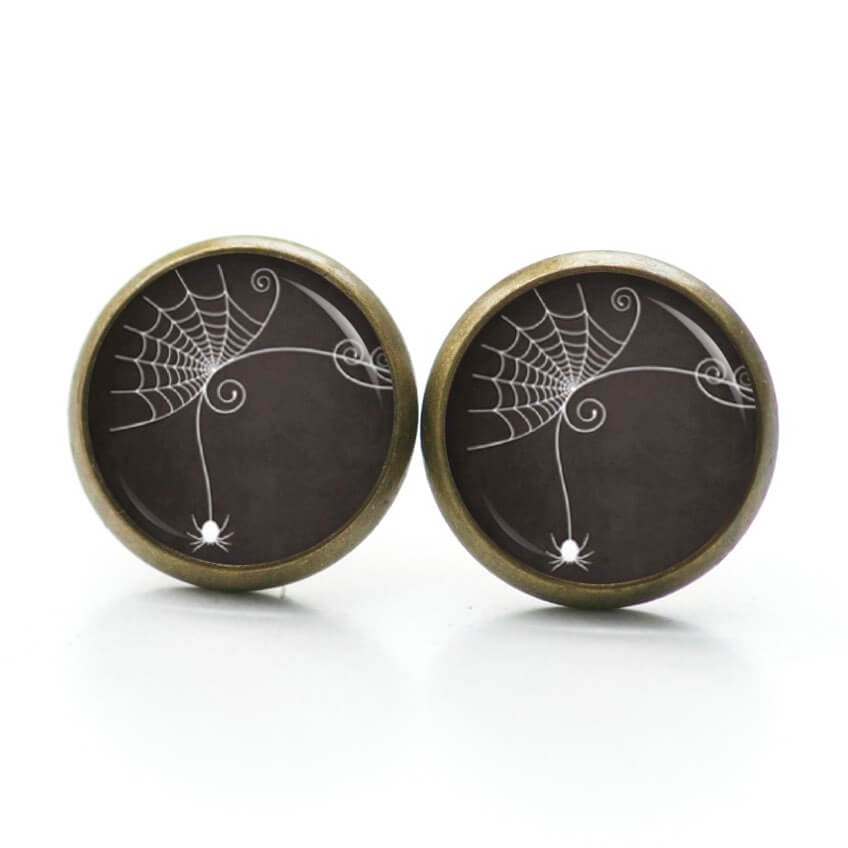 Druckknopf Ohrstecker Ohrhänger Clipse Halloween elegantes Spinnennetz mit Spinne