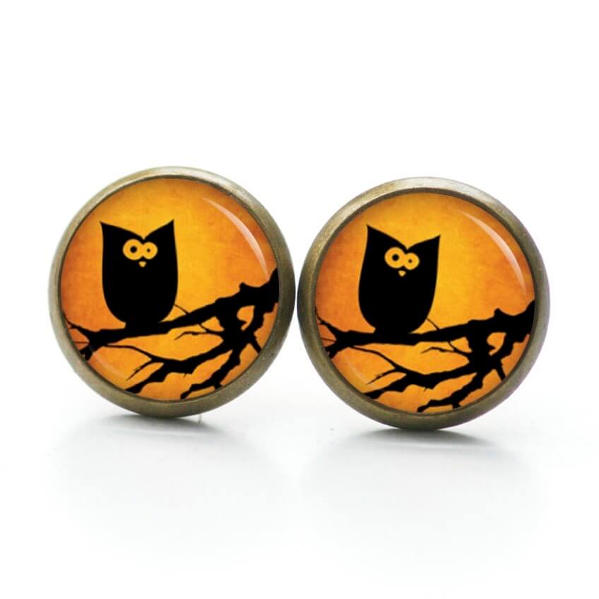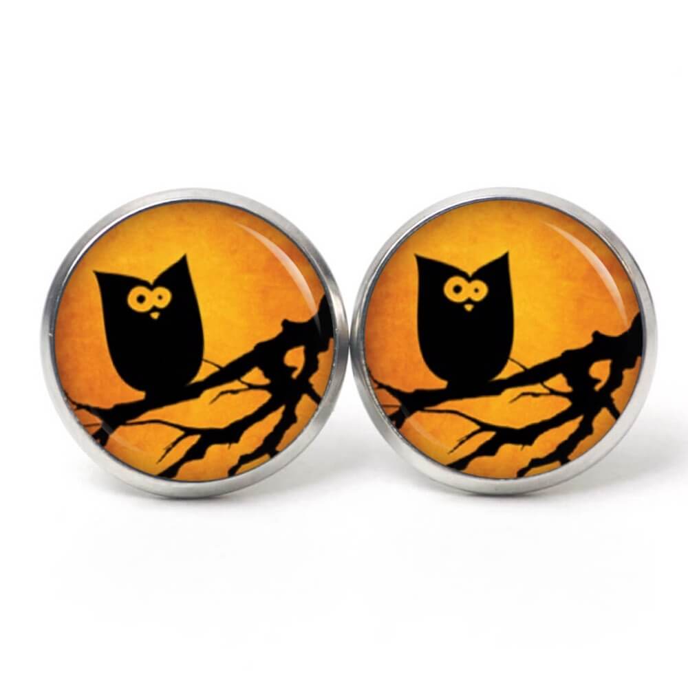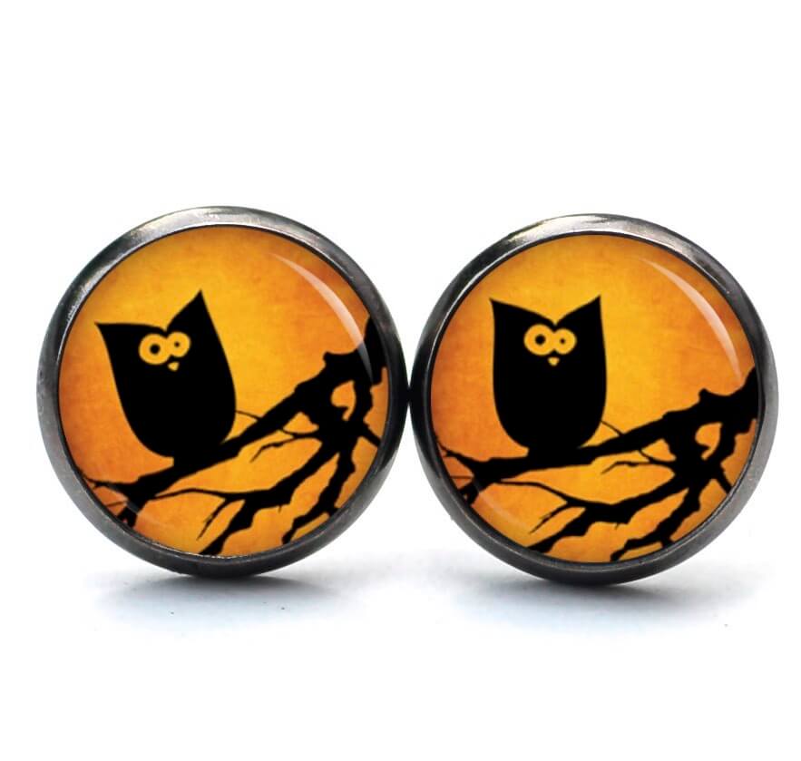 Druckknopf Ohrstecker Ohrhänger Clipse Halloween verrückte Eule