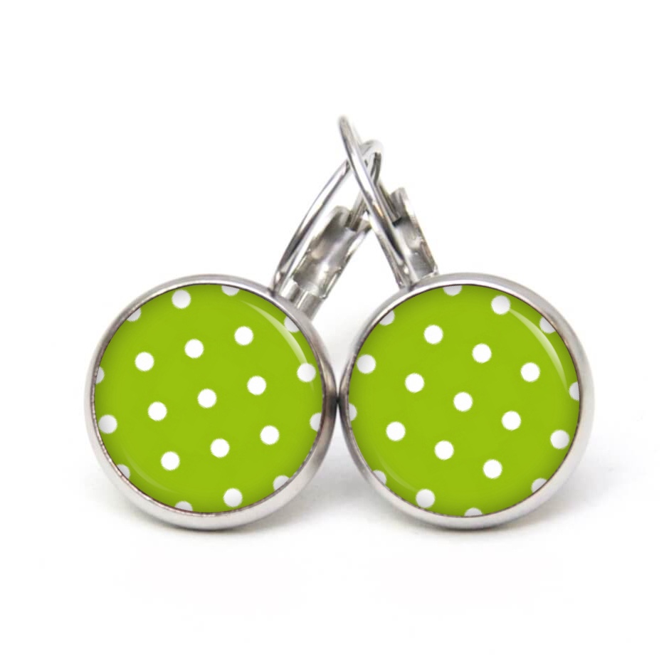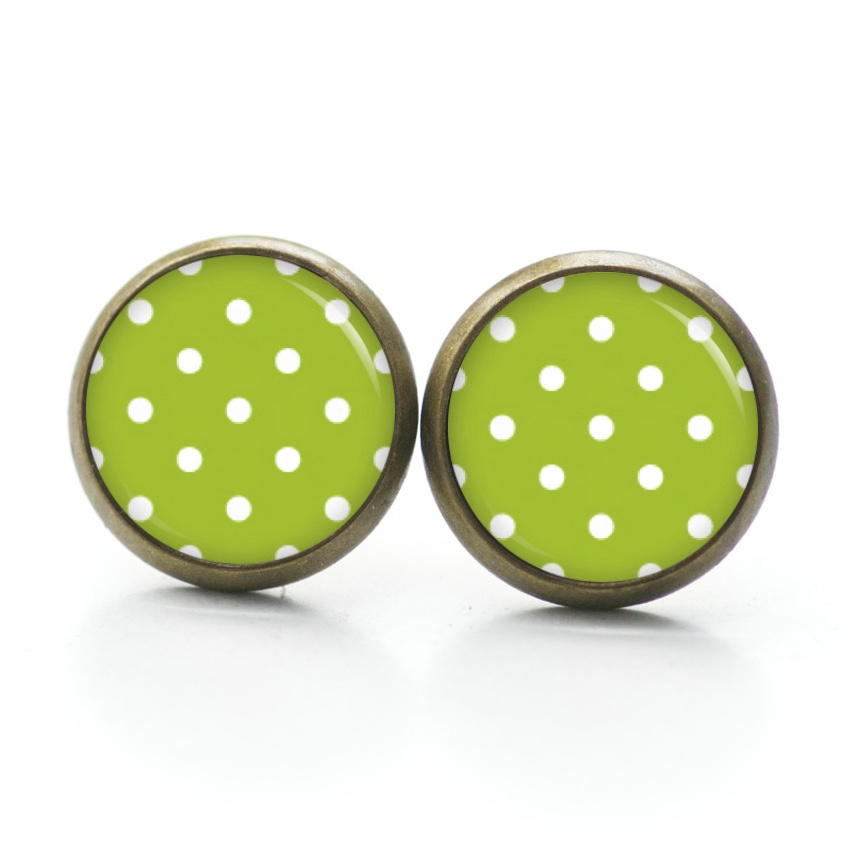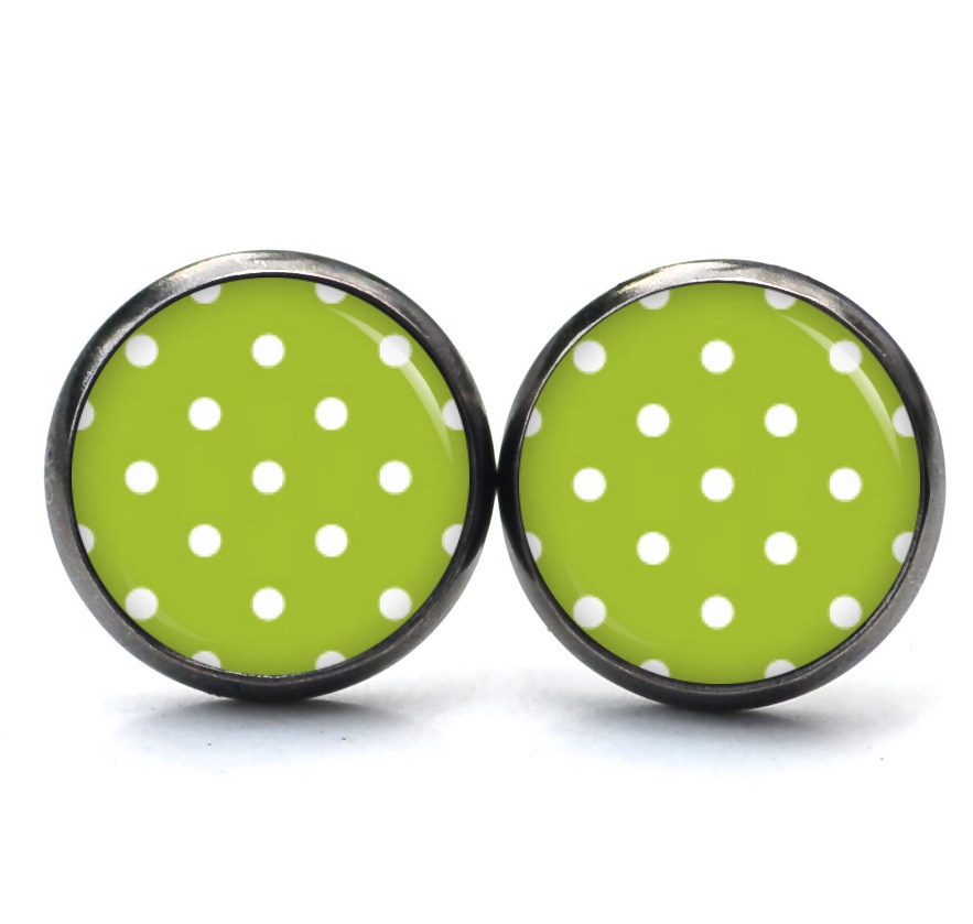 Druckknopf Ohrstecker Ohrhänger Clipse grün mit weißen Tupfen Punkten Polka Dots