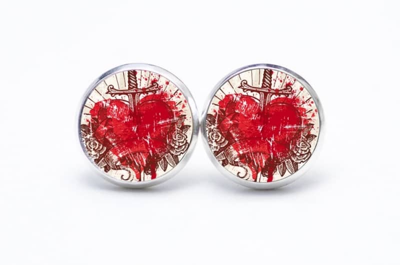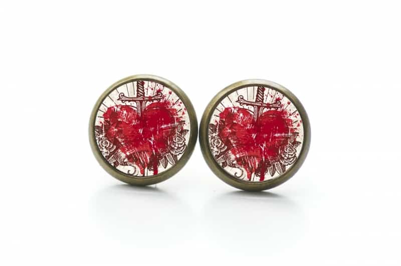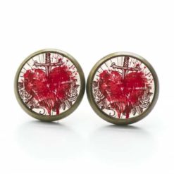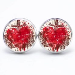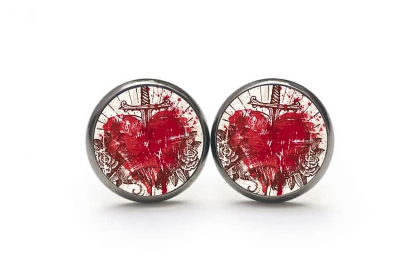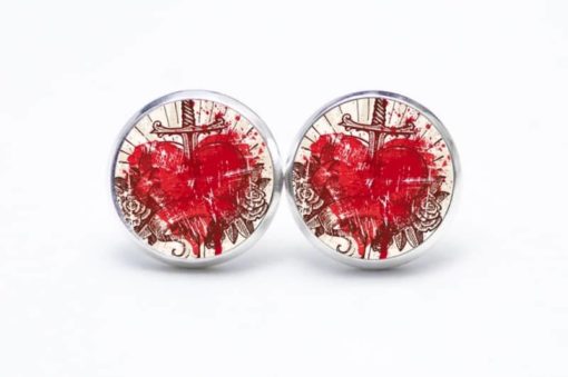 Druckknopf Ohrstecker Ohrhänger Herz mit Schwert