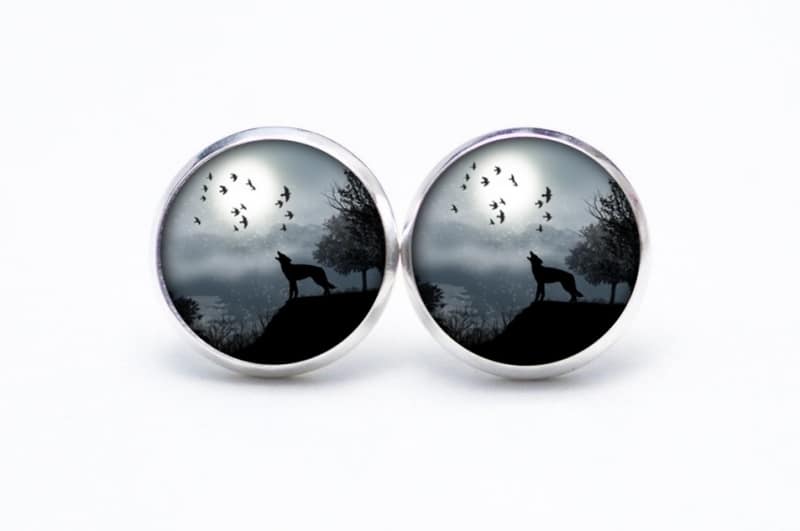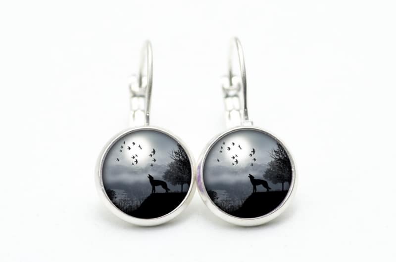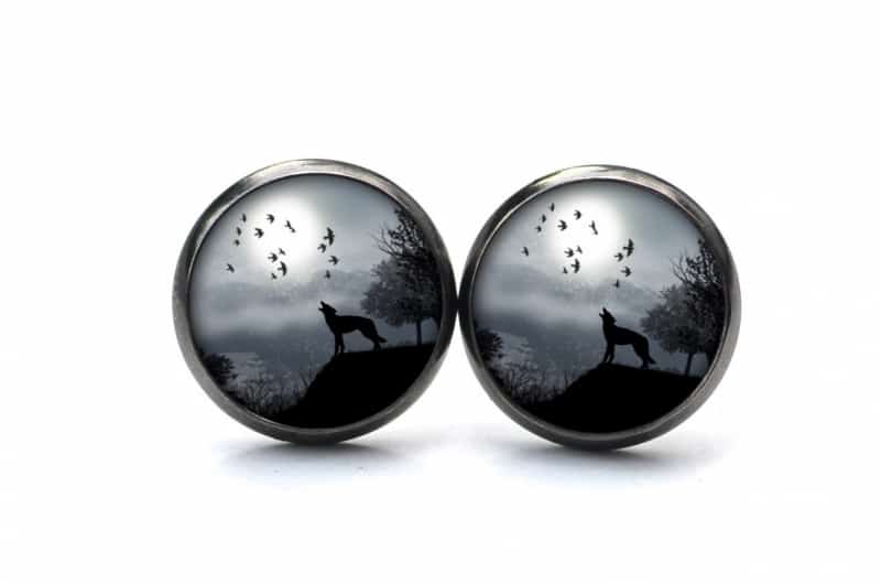 Druckknopf / Ohrstecker / Ohrhänger heulender Wolf