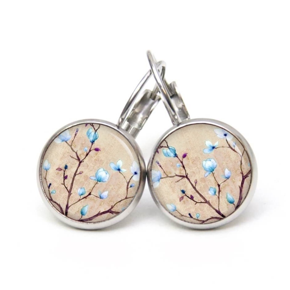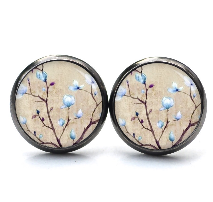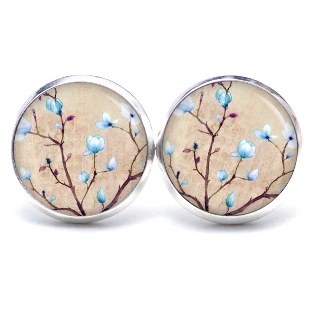 Druckknopf Ohrstecker Ohrhänger Clipse Kirschblüten in beige und hellblau