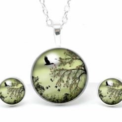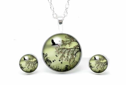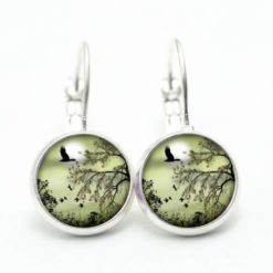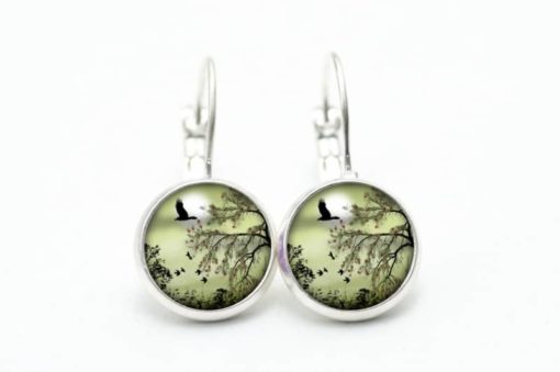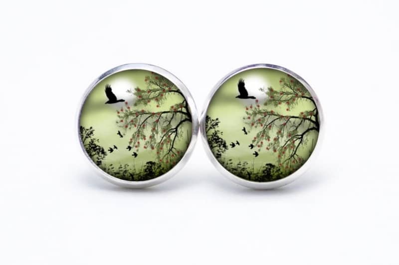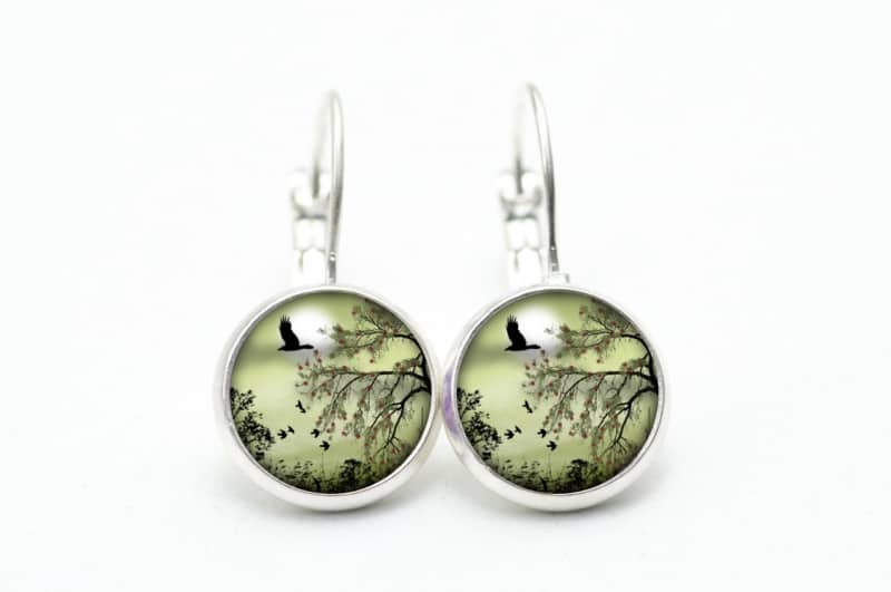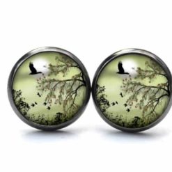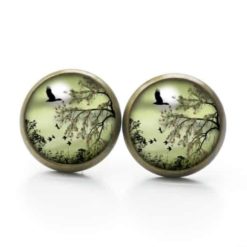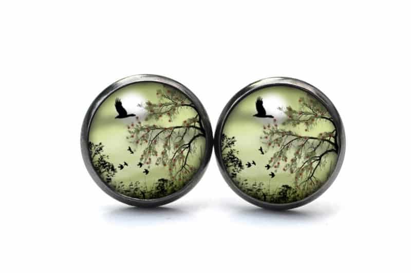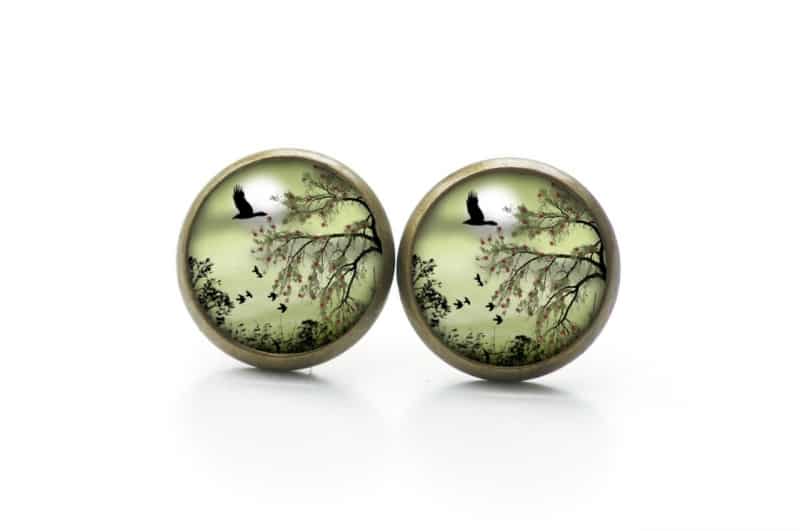 Druckknopf Ohrstecker Ohrhänger Landschaft Grün Gänse