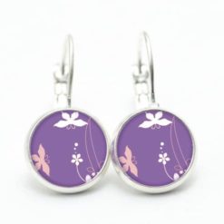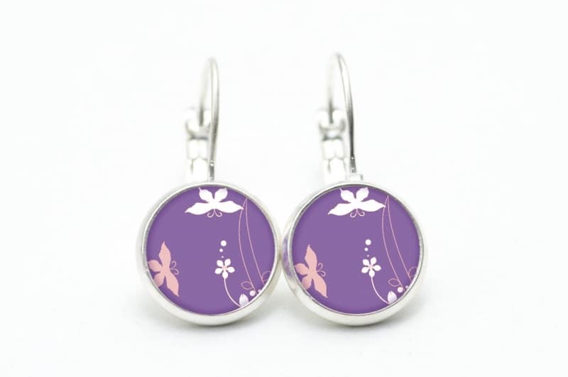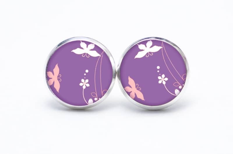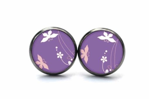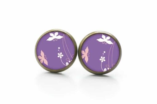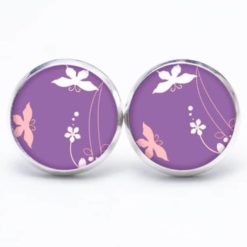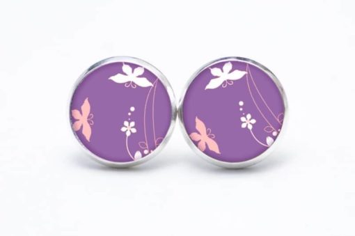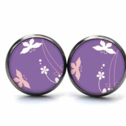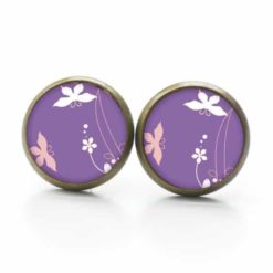 Druckknopf / Ohrstecker / Ohrhänger lila mit Schmetterlingen und Blume