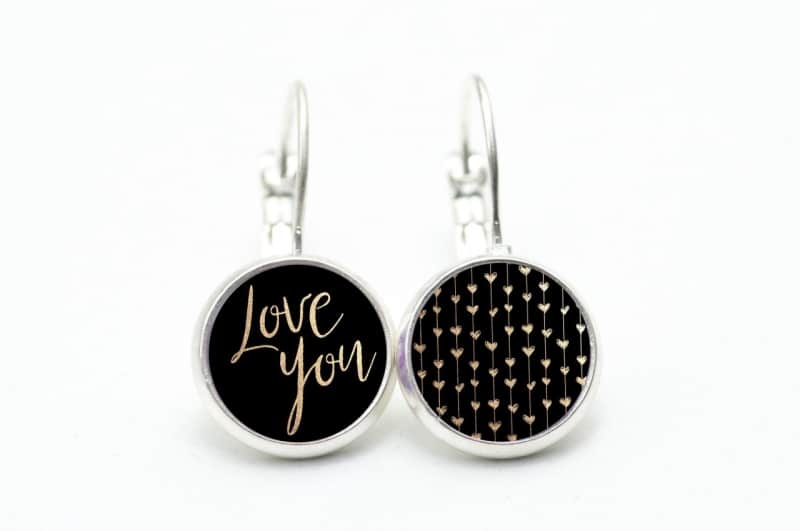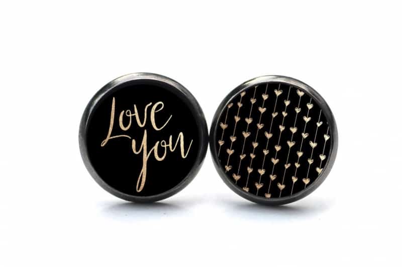 Druckknopf Ohrstecker Ohrhänger Love you Liebe dich Valentinstag mit Herzen