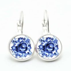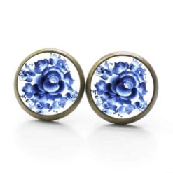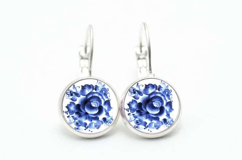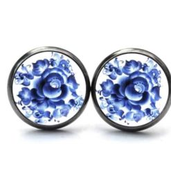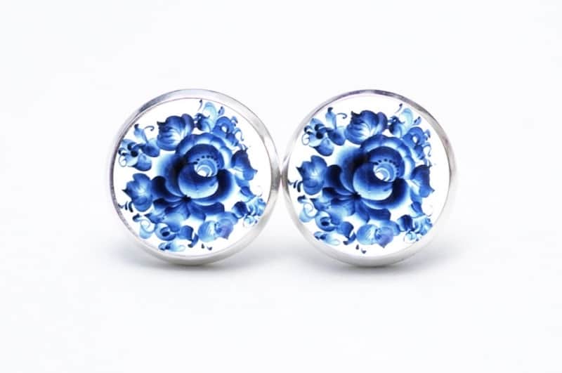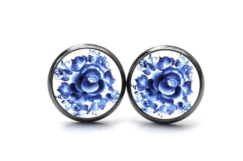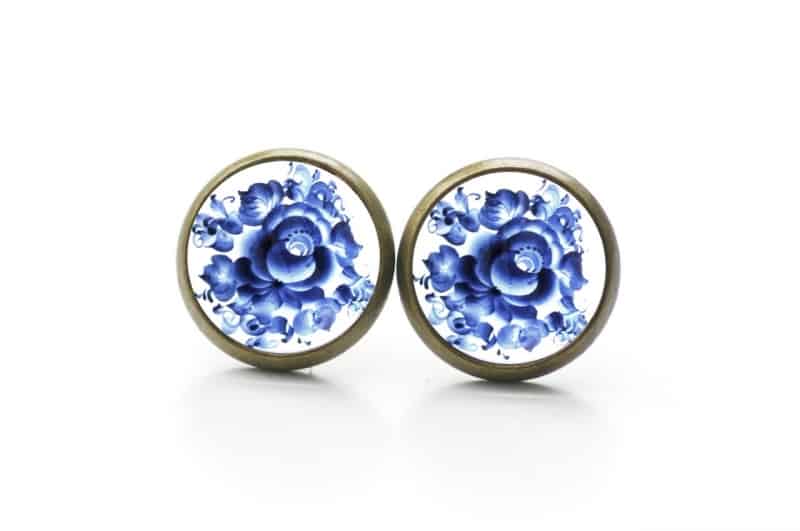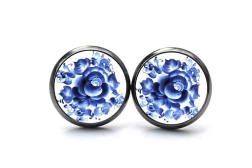 Druckknopf / Ohrstecker / Ohrhänger mit blauem floralem Muster Gzhel