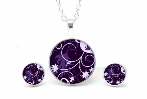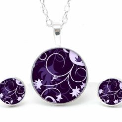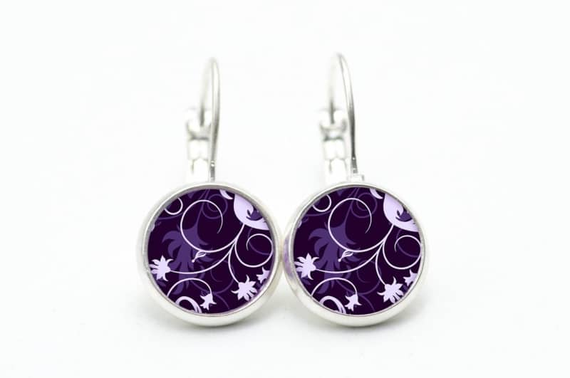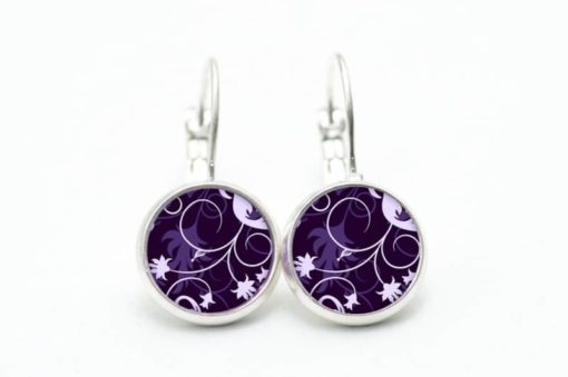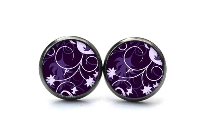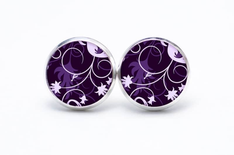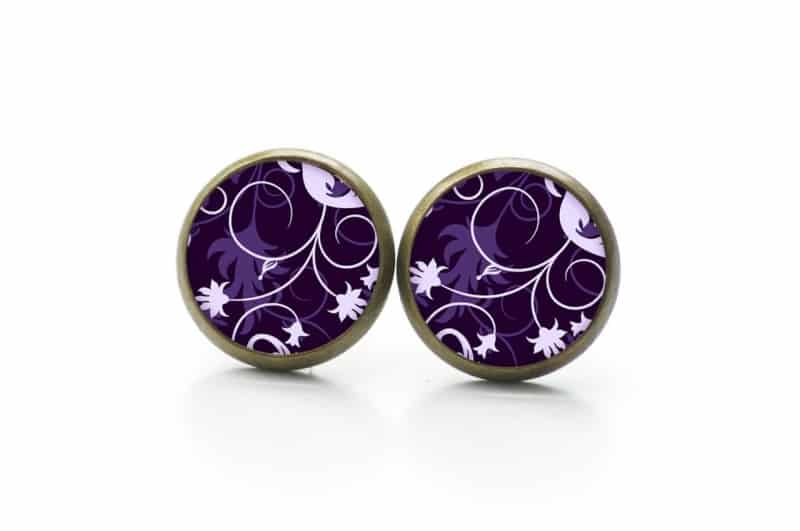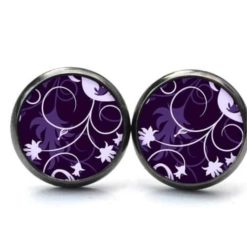 Druckknopf Ohrstecker Ohrhänger mit floralem violettem Muster