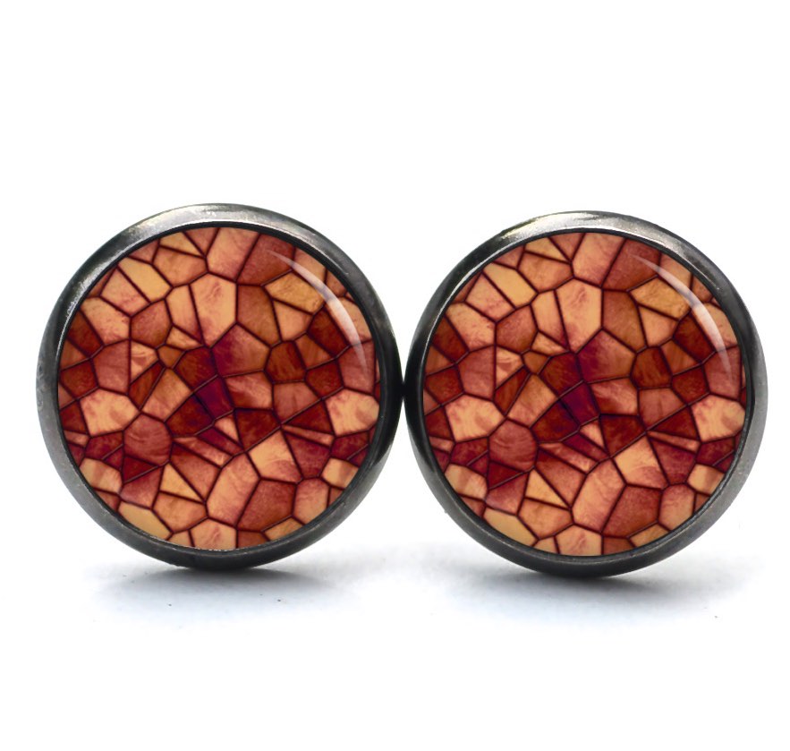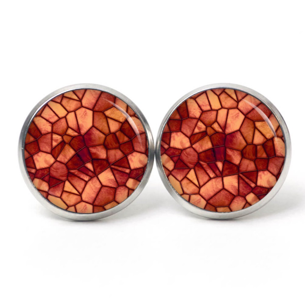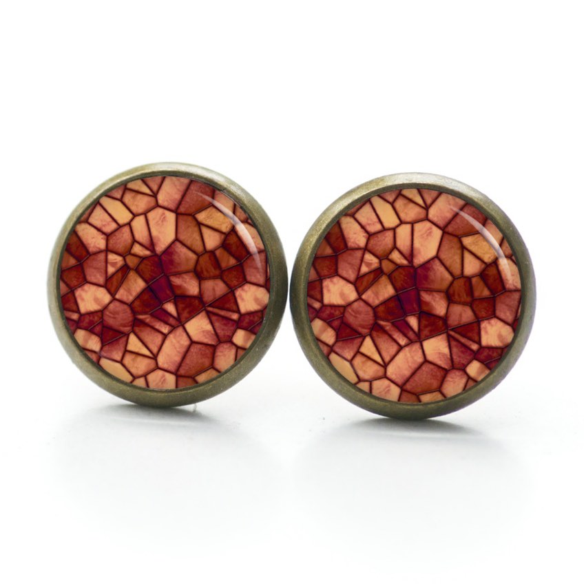 Druckknopf Ohrstecker Ohrhänger Clipse Mosaik Glasmosaik Muster teracotta rot orange braun